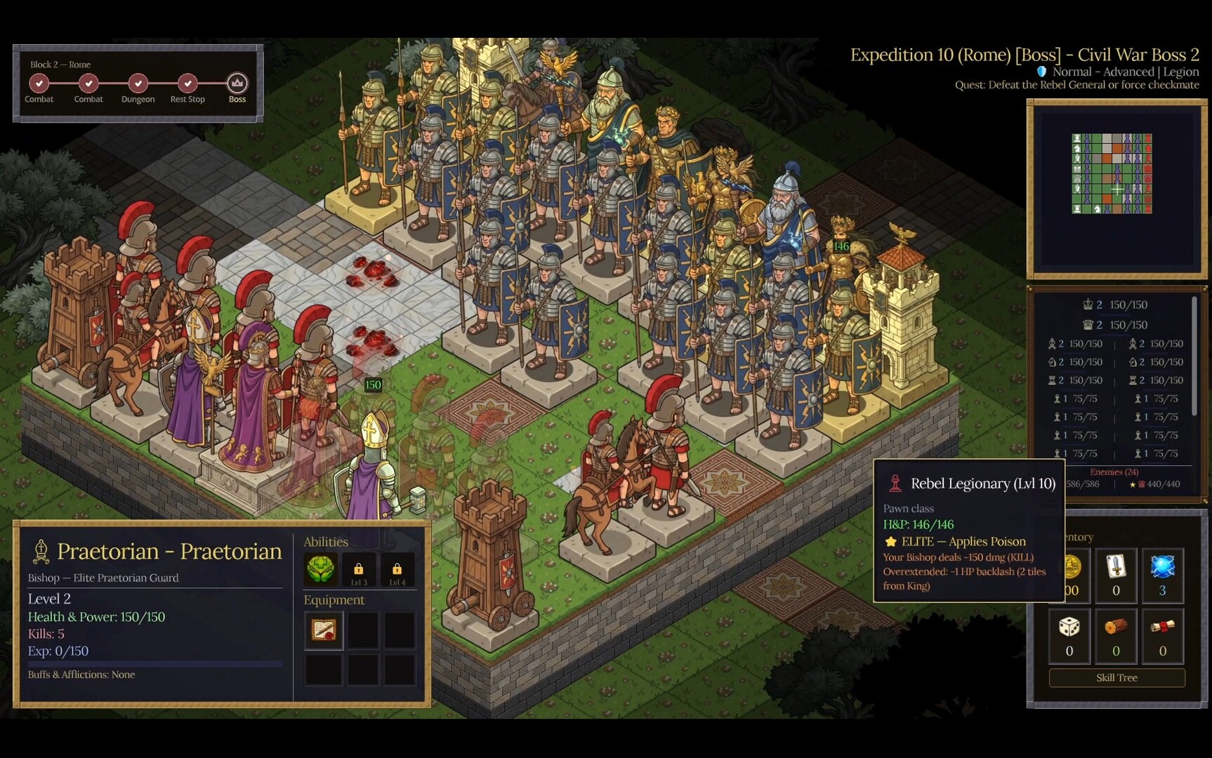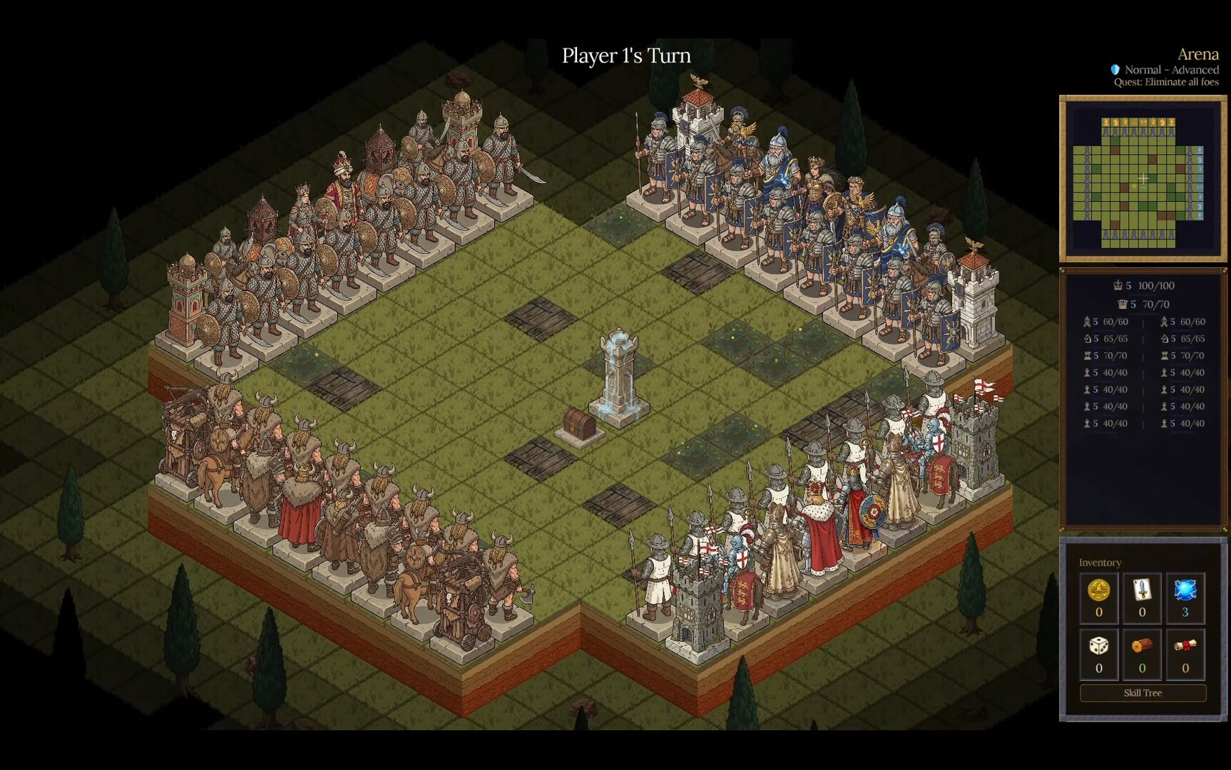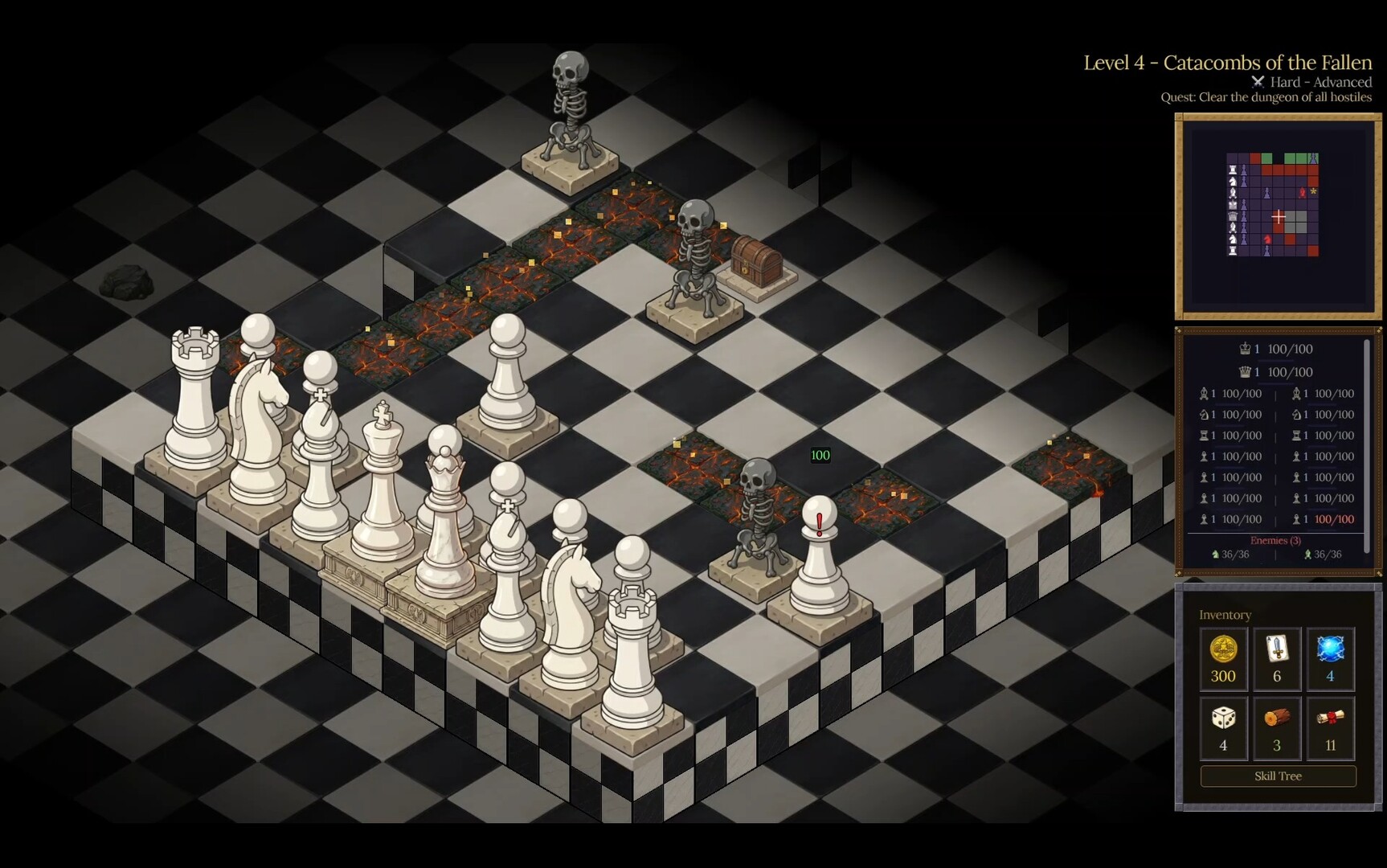 A tactical chess roguelike. Your chess pieces have health. They level up. They fight to survive.