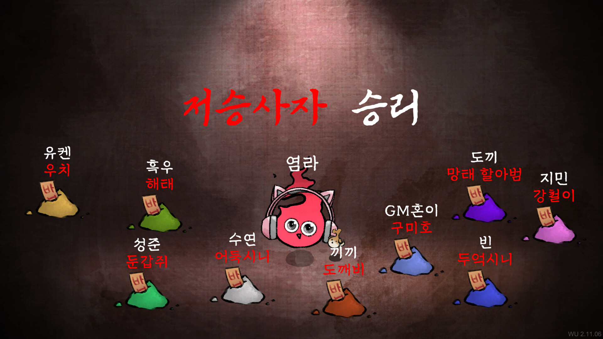 공포스러운 배경과 멍청하고 귀여운 캐릭터