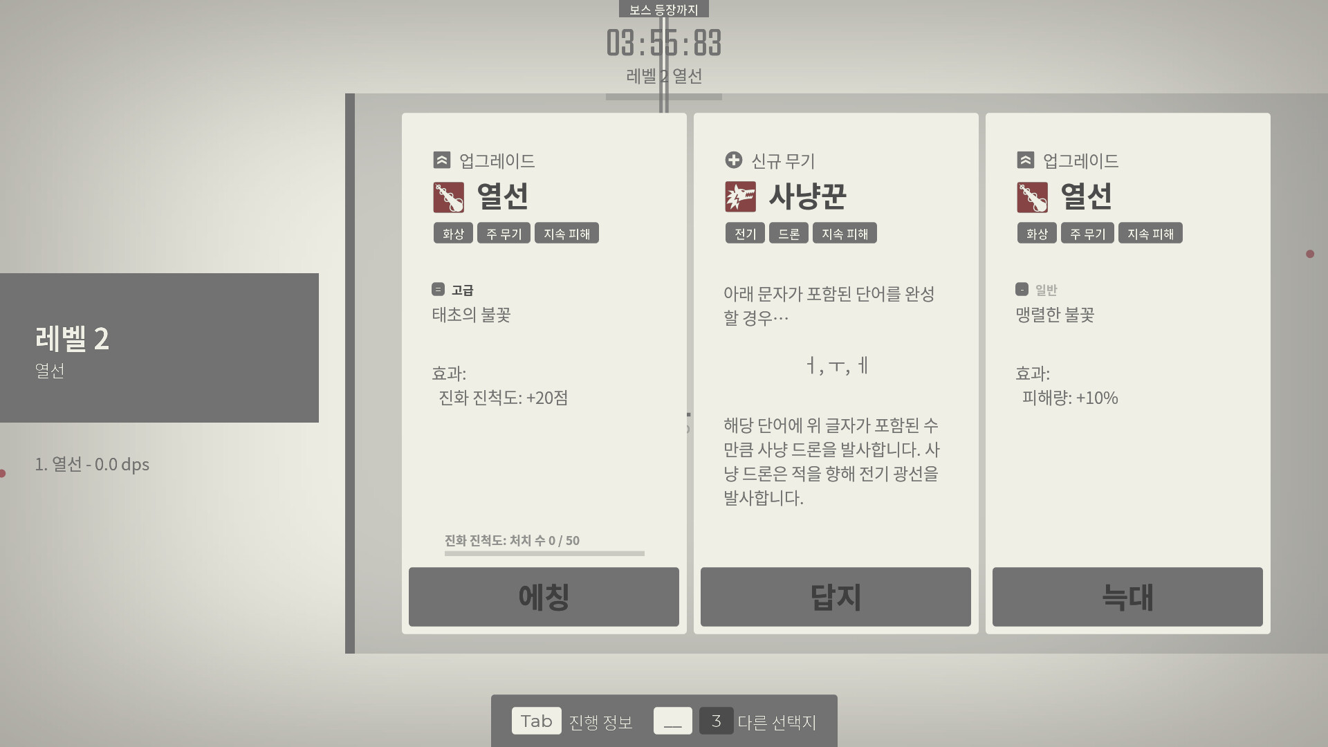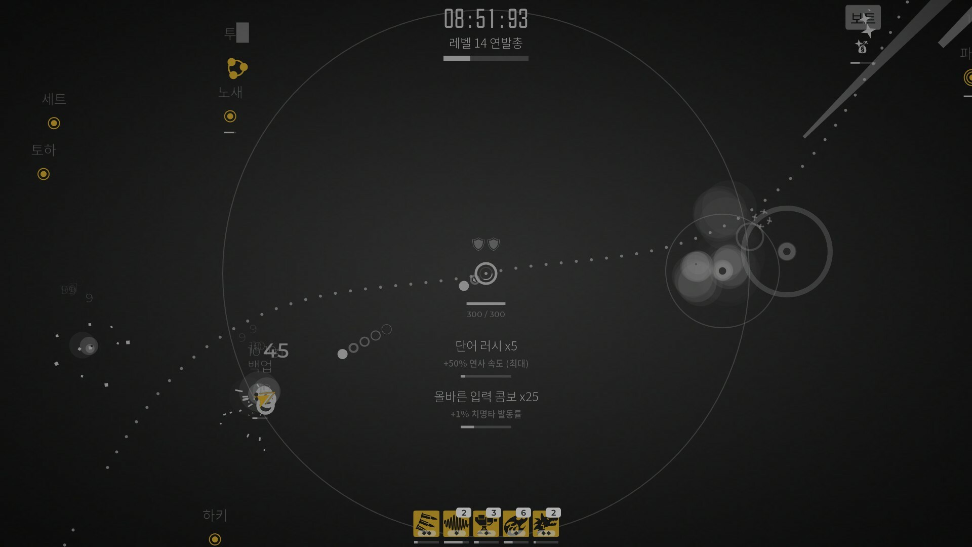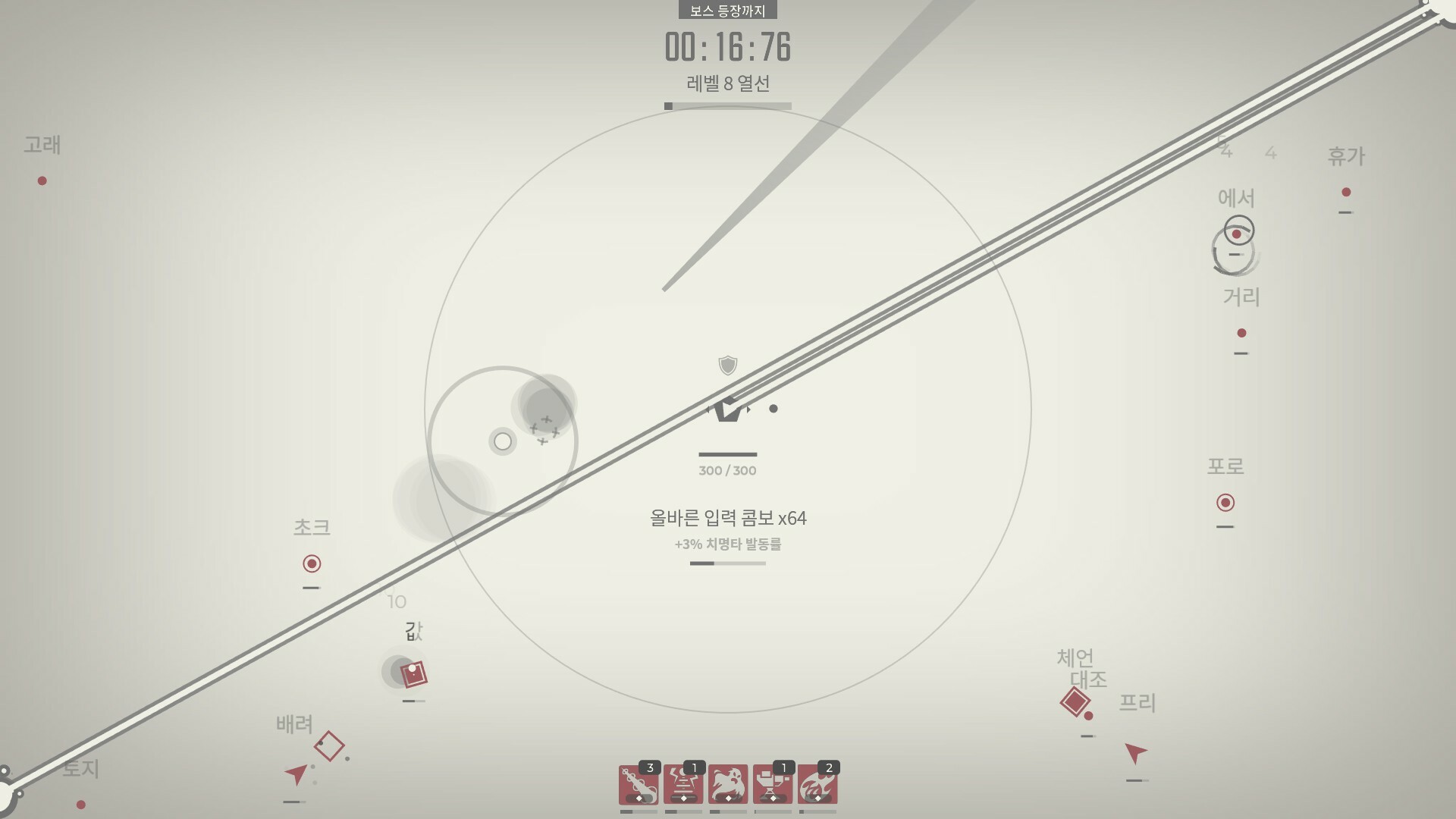 타자 연습이 무리로부터의 생존을 만나는 빠른 템포의 로그라이트에서, 당신의 속도와 정확도, 전략이 시험대에 오르게 됩니다. 최소주의적인 아레나에 발을 들이고, 당신의 타자 실력과 듬직한 키보드를 이용해 전장을 지배하세요.