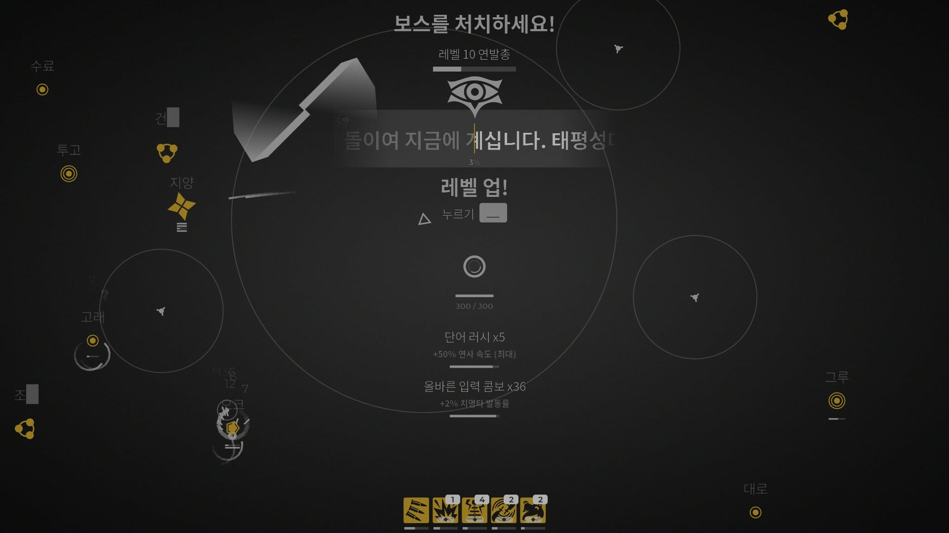강력한 보스전에 맞춰 전략을 (신속하게) 수정하세요당신이 극복해야 할 여러 시련이 있으며, 각 시련의 끝은 보스가 가로막고 지키고 있습니다. 시련을 이겨내면 적들을 훨씬 더 강하게 만드는 흉조가 등장합니다. 당신은 과연 타자를 통해 글자 군주의 허를 찌를 수 있을까요?