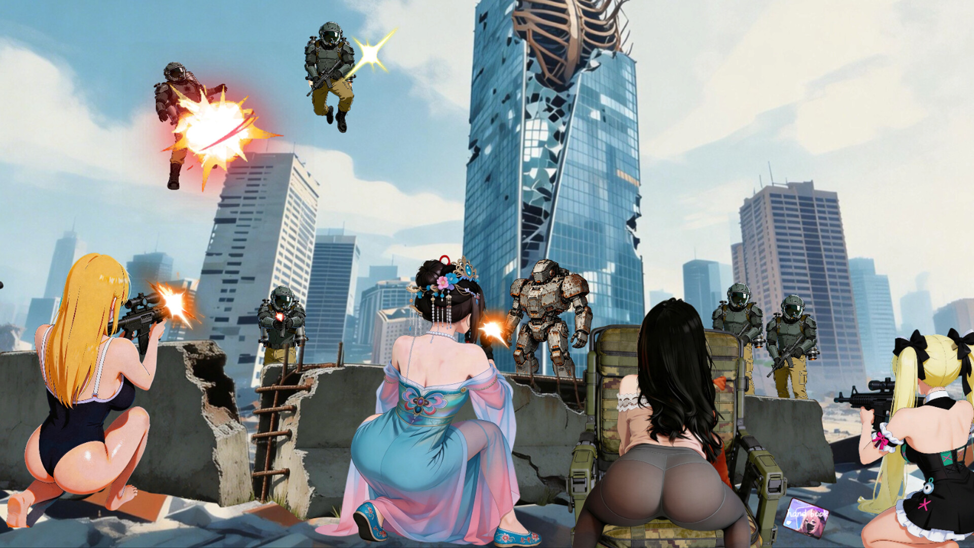 3. Features: Female character backfire shooting