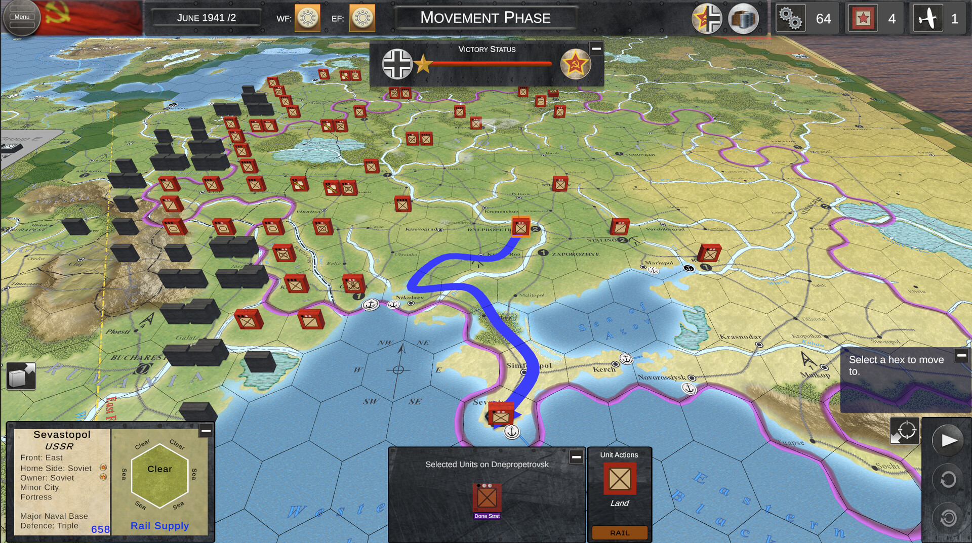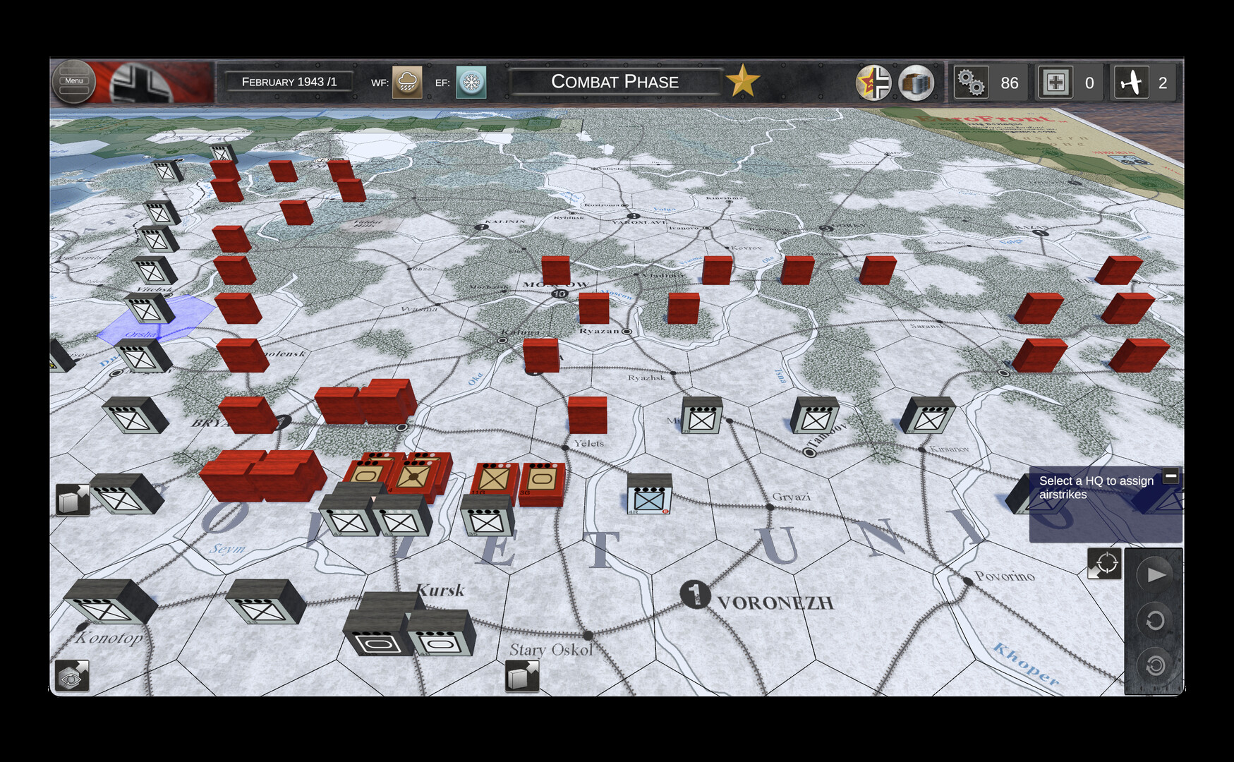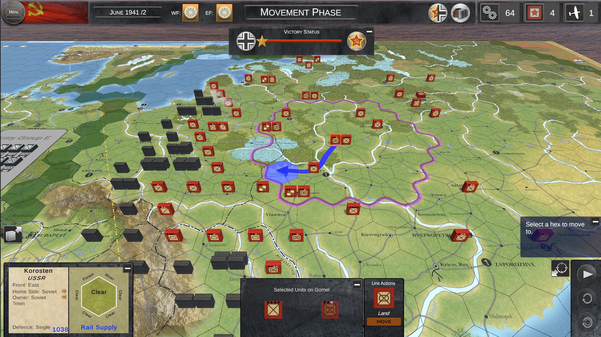 This system is not necessary in a digital game, were other programming trick and features could give a similar result, but it was decided to keep it as a tribute to the quality products created by Columbia Games and because a great majority of players are familiar with this proven concept, and have enjoyed this game which is probably one of the best simple grand strategic simulation of WW2 on the Eastern Front.