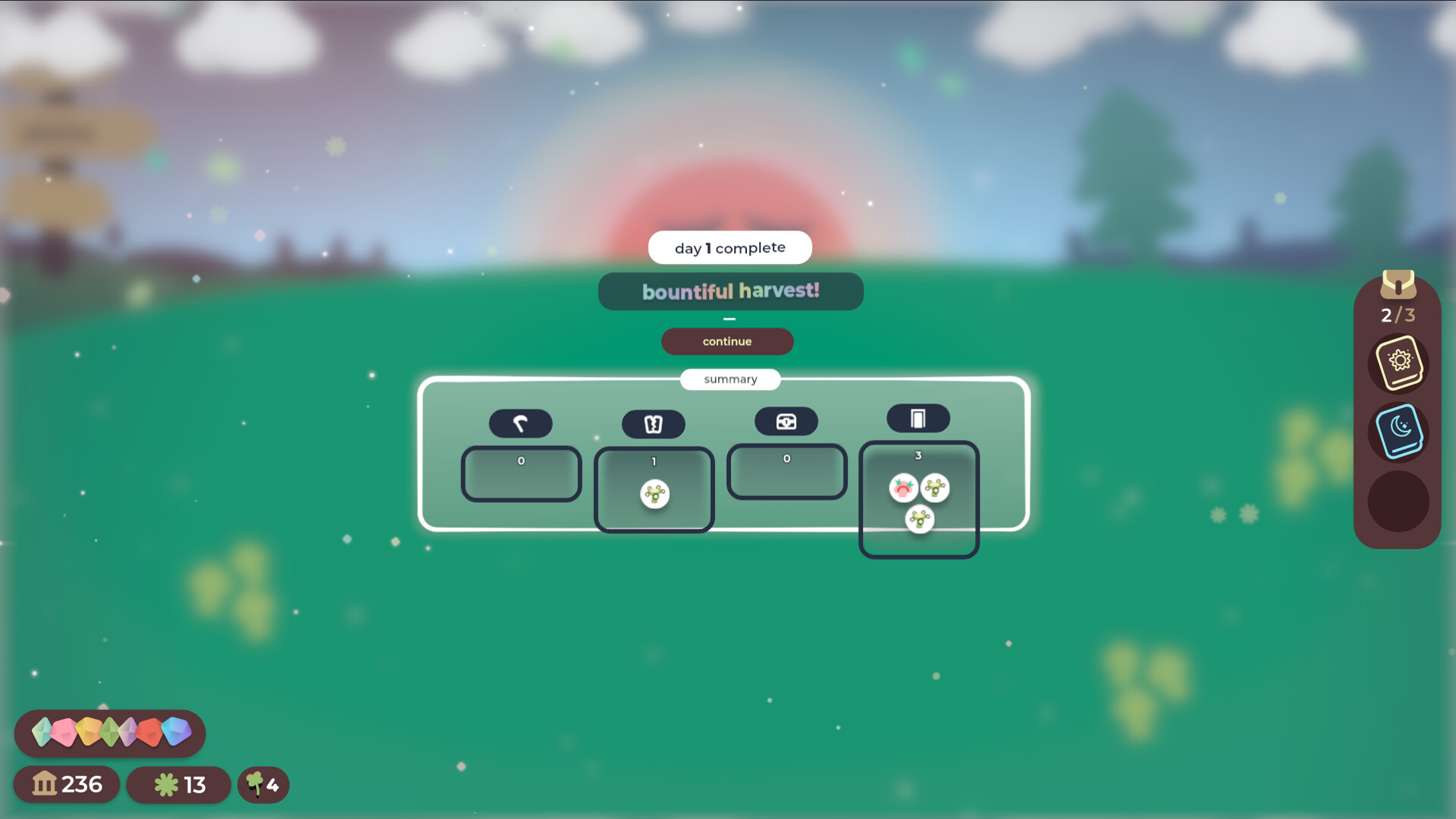When the moon rises & you've failed to harvest enough shrooms to survive the night, all hope is not lost. You may sacrifice cards to cultivate luck for one last roll, then your fate is determined by fortune while you rest.