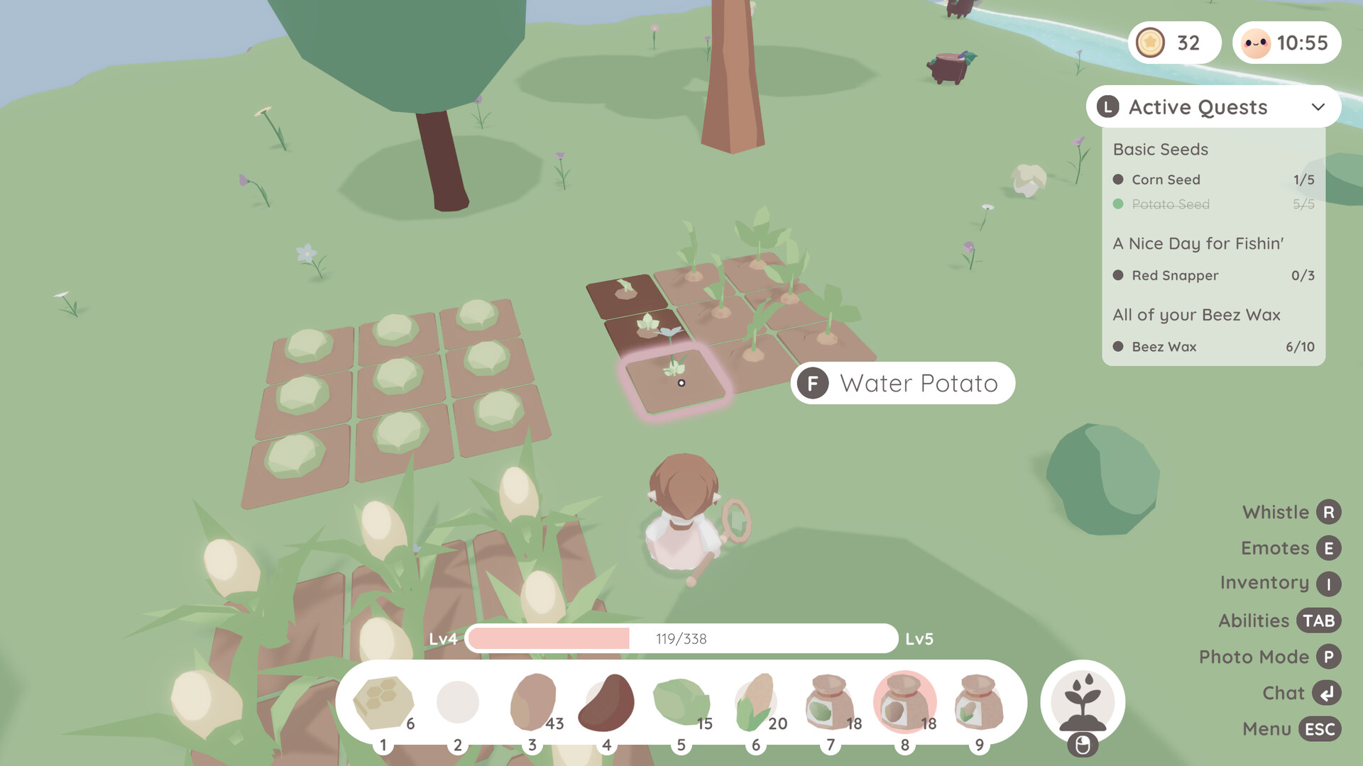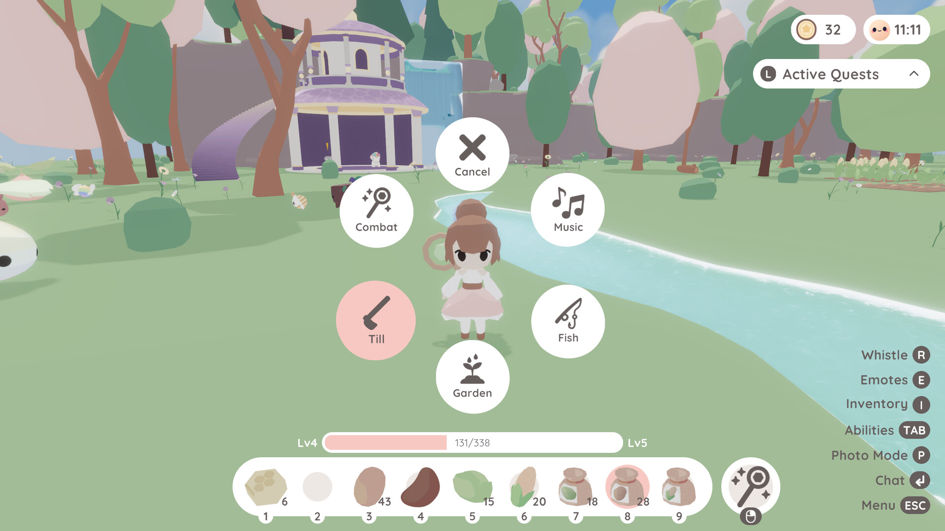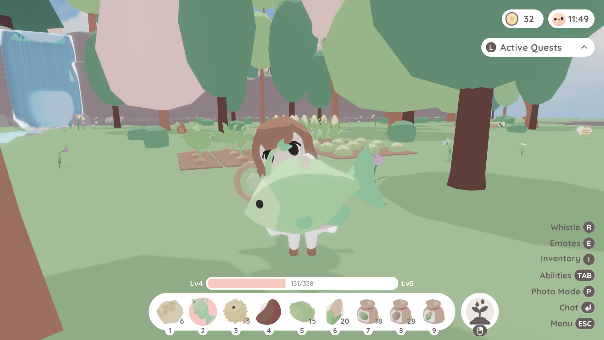 Take on quests to earn some extra coin. At the shops, purchase new cosmetics for your character or trade in crops for new dyes.