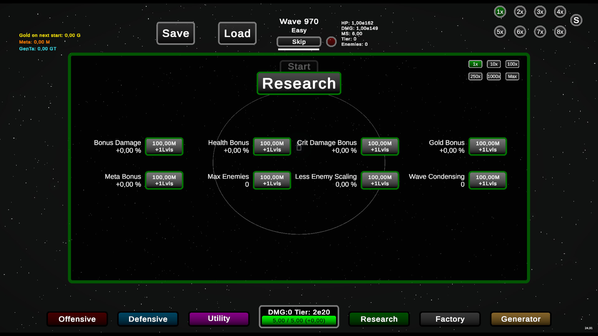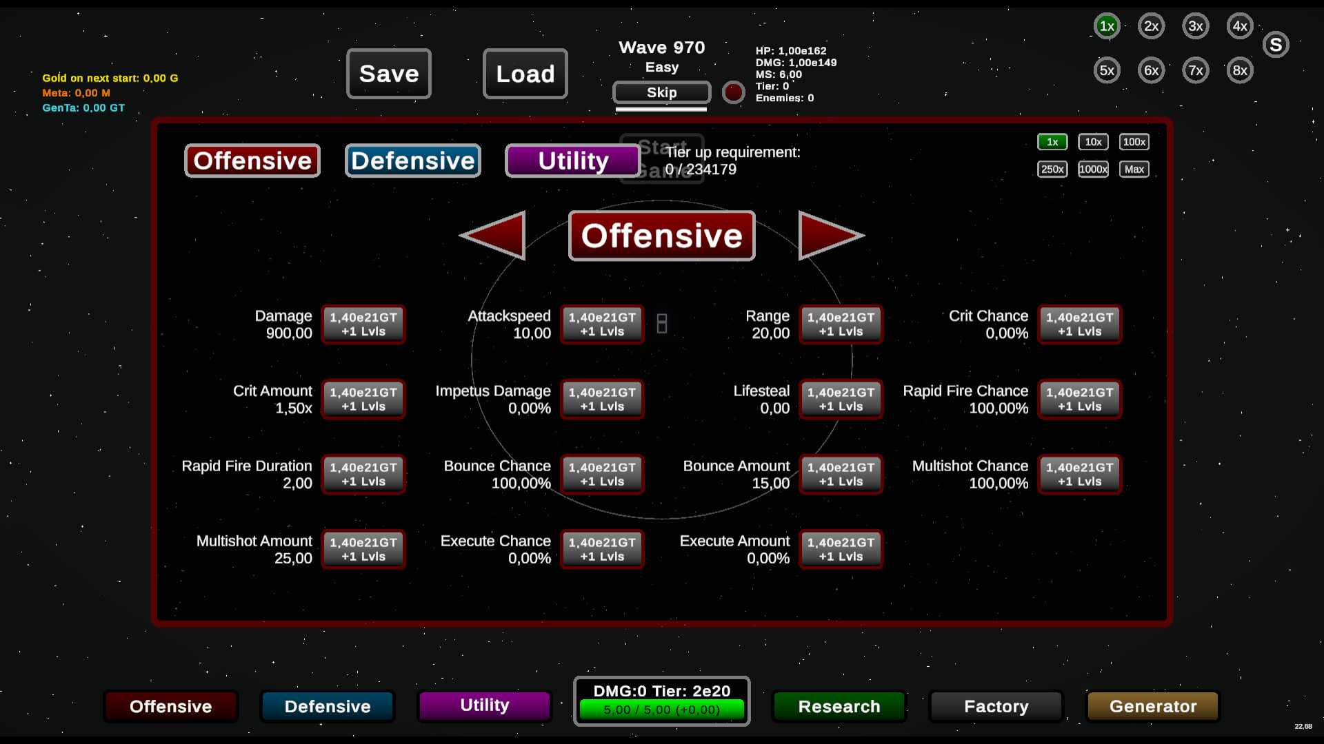 Upgrade your tower using the gold gained from defeating enemies in game, as well as permanently upgrade your tower using the Meta-Resource that drops from special enemies.