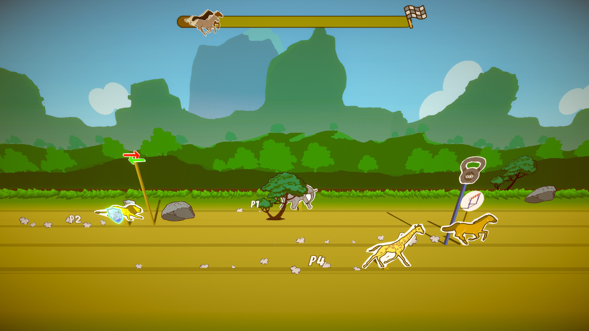 Wildsprinters is a party game where every game mode is also a race. Players compete to be the first to cross the finish line — or get the furthest before time runs out.