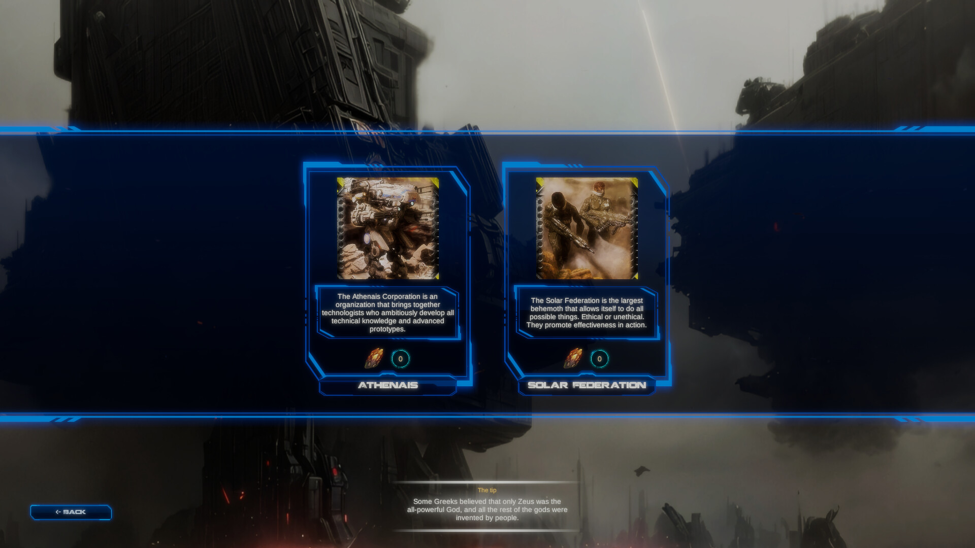 In the game, players play the role of one of the corporations that fights with other corporations for influence over planets in the future in the Precursors universe.