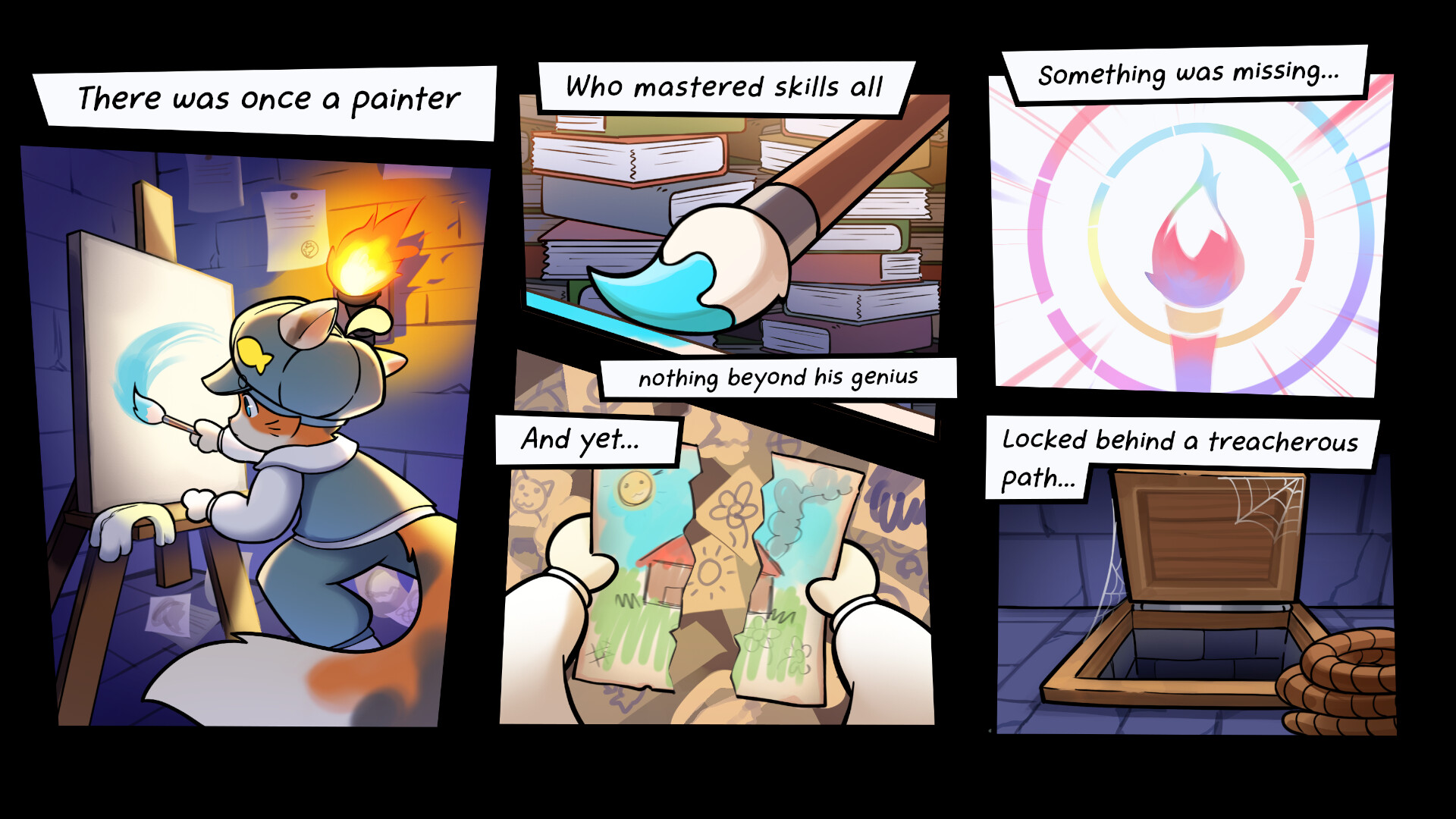 Play as Picatso, a calico cat painter searching for a creative spark. Navigate through underground ruins with his ability to paint the environment which allow him to advance in this platforming adventure!