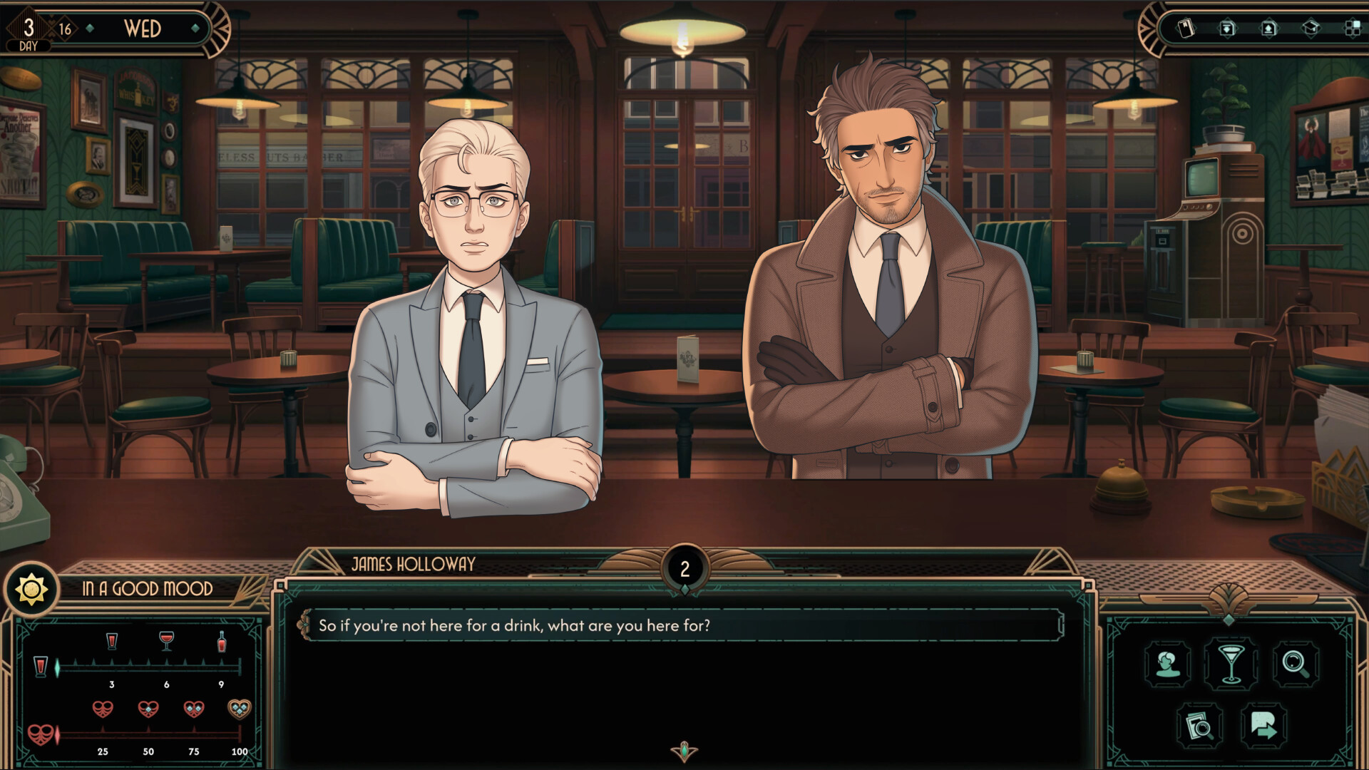 단골손님과 가까워지며 그들의 삶 일부가 되어보세요. 우정을 나누고, 라이벌이 되기도 하며, 때로는 사랑이 싹틀 수도 있습니다… 하지만 방심하지 마세요. 22명의 개성 넘치는 등장인물은 저마다 들려줄 이야기가 있습니다. 누가 진실을 말하고 있으며, 누가 손에 피를 묻히고 있을까요?