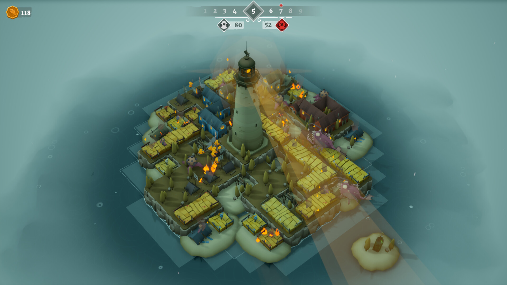 차갑고 끝없는 바다 한가운데, 외로운 등대 하나가 서 있다. 그 주변으로 당신의 섬은 하나씩, 타일 하나씩 형태를 갖춰 간다. 구름 사이로 햇빛이 스며들고 희망이 감돌지만, 수면 아래에는 기묘한 존재가 도사리고 있다.