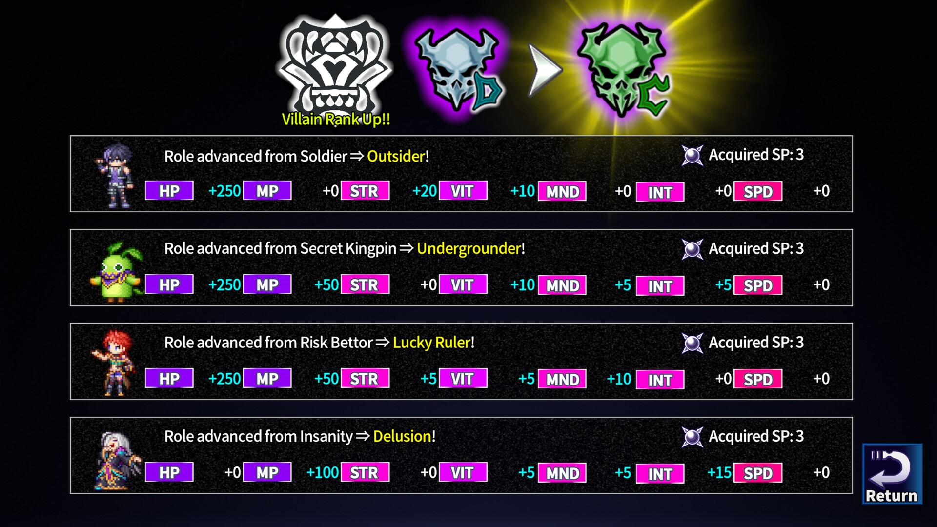 클래식 RPG 커맨드 시스템과 현대적 메커니즘이 결합된 전략적인 턴제 전투를 즐겨라. 적의 약점을 공략하고 연계 공격과 강력한 브레이크 공격을 발동하라. 악행으로 악명을 쌓아 랭크를 올리고 스킬 트리에서 고유 능력을 해금하라. 던전을 탐험하고 자원을 수집하며 대장간, 연구소, 밀수 등 다양한 시설로 나만의 악의 기지를 발전시켜라. 픽셀 아트의 매력과 몰입감 있는 스토리, 깊이 있는 전략성을 갖춘 작품이다.