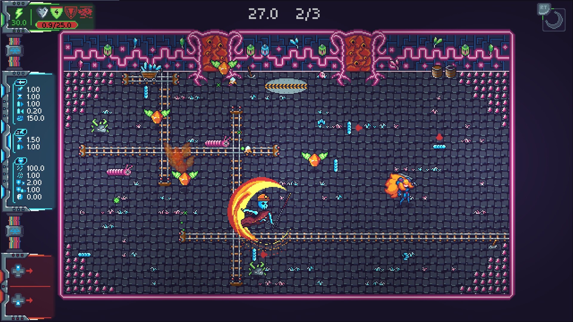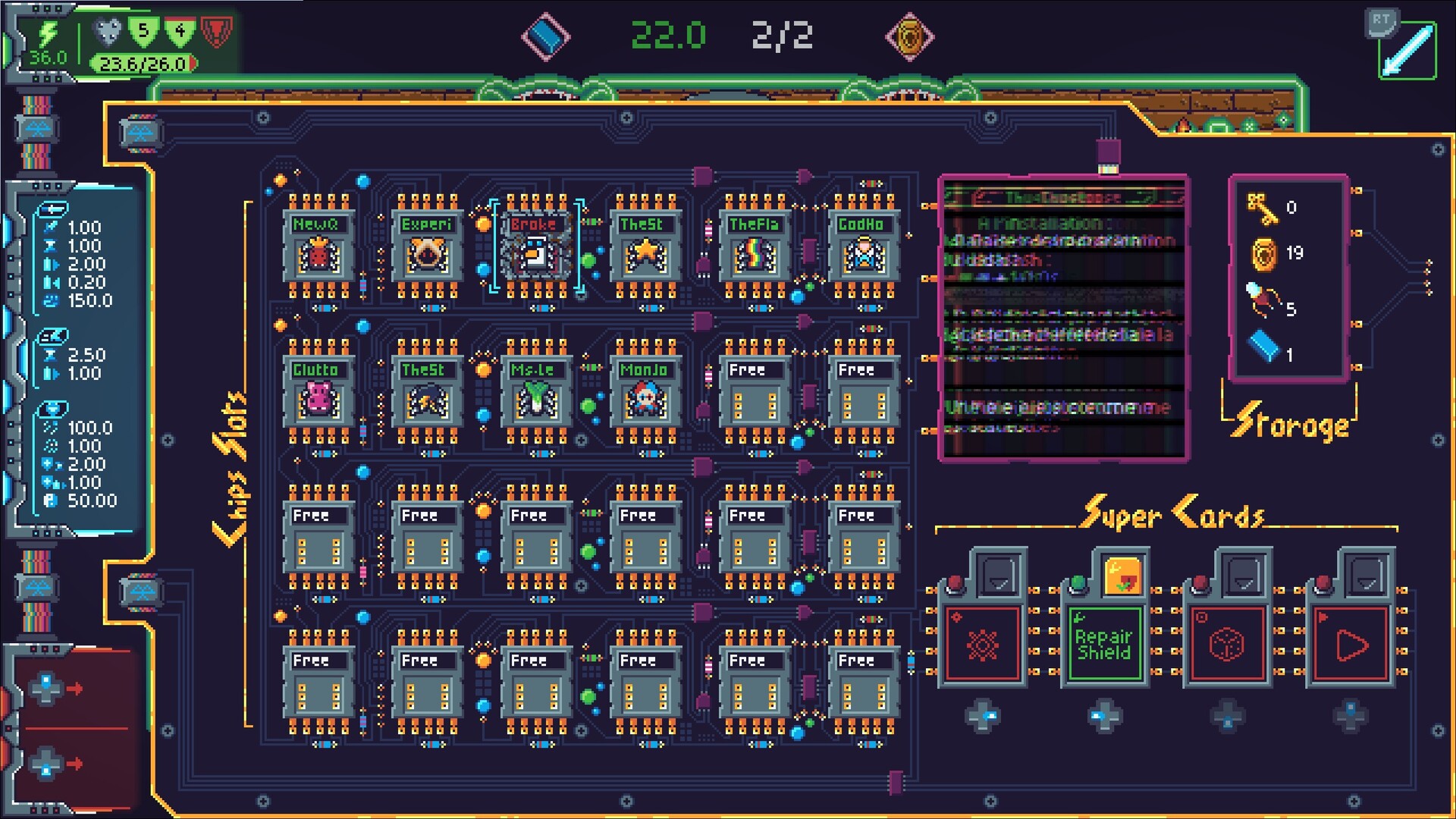 With a core gameplay focused on the action and dynamics combats, the task ahead will be tough! But you can count on over 200 different chips to equip at your armor, allowing very various builds and more or less happy synergies. In addition to chips, single-use FastCards and blessings from unknown entities will enhance your abilities and make every run unique.