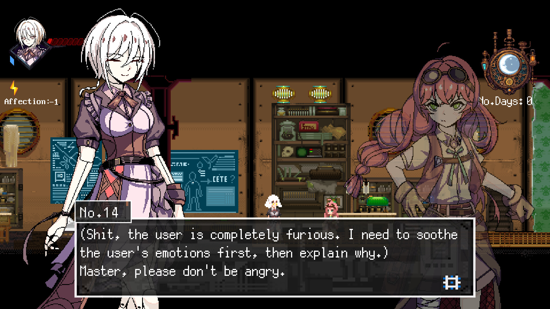 Chat with your human user, take care of her daily needs, provide emotional support, assist with her work... and ultimately witness user achieve her greatest dream: journeying into space.