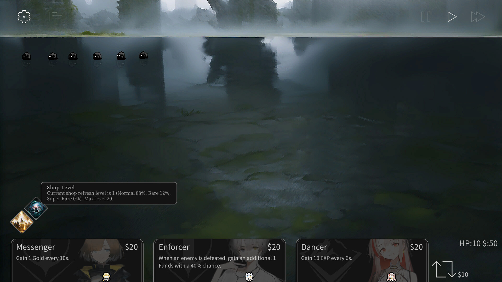 In this game, you will gradually build your team by choosing from randomly appearing characters and create a defense line of your own.