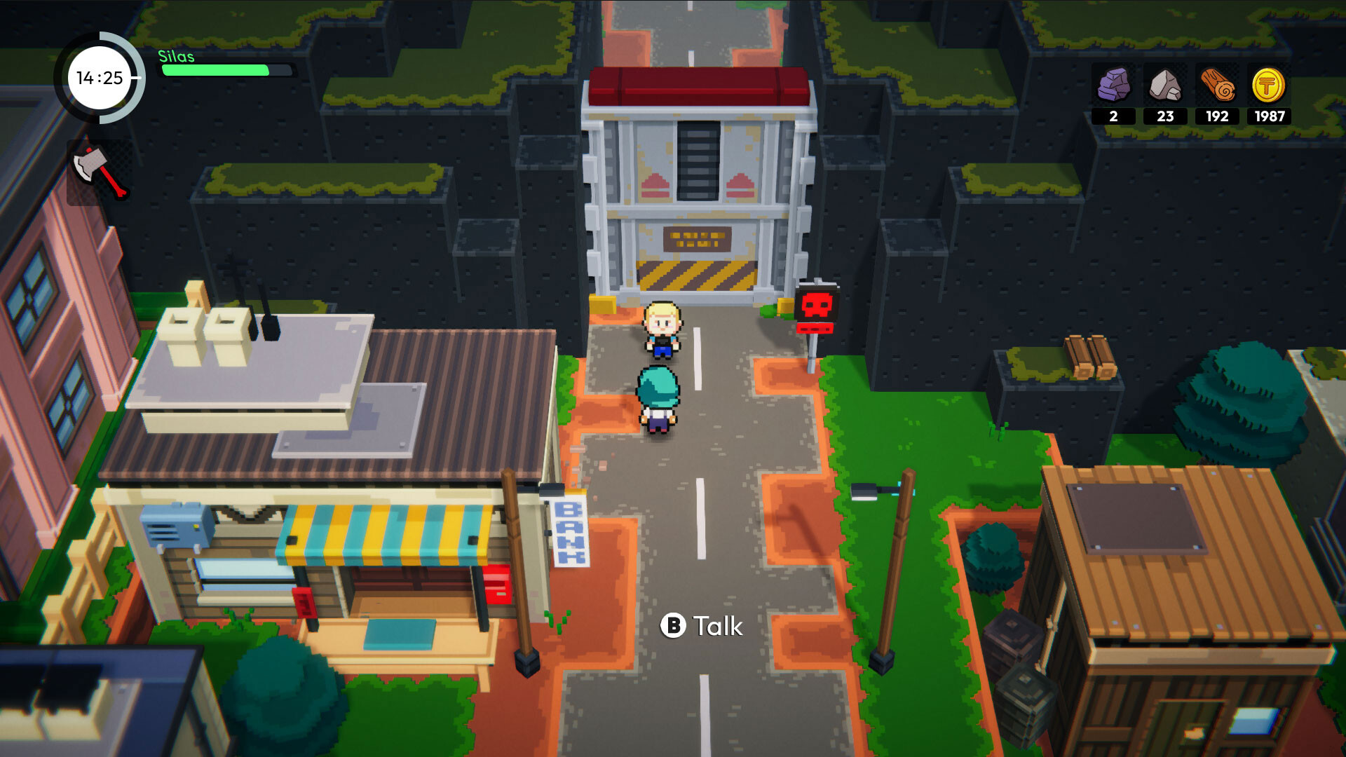 A hybrid visual style — voxel environments, pixel art characters, illustrated portraits — carried by an atmospheric soundtrack that drifts between 16-bit nostalgia and uneasy textures. No combat, no game over — Harvest Hollow is an invitation to dig, understand, and piece things back together.