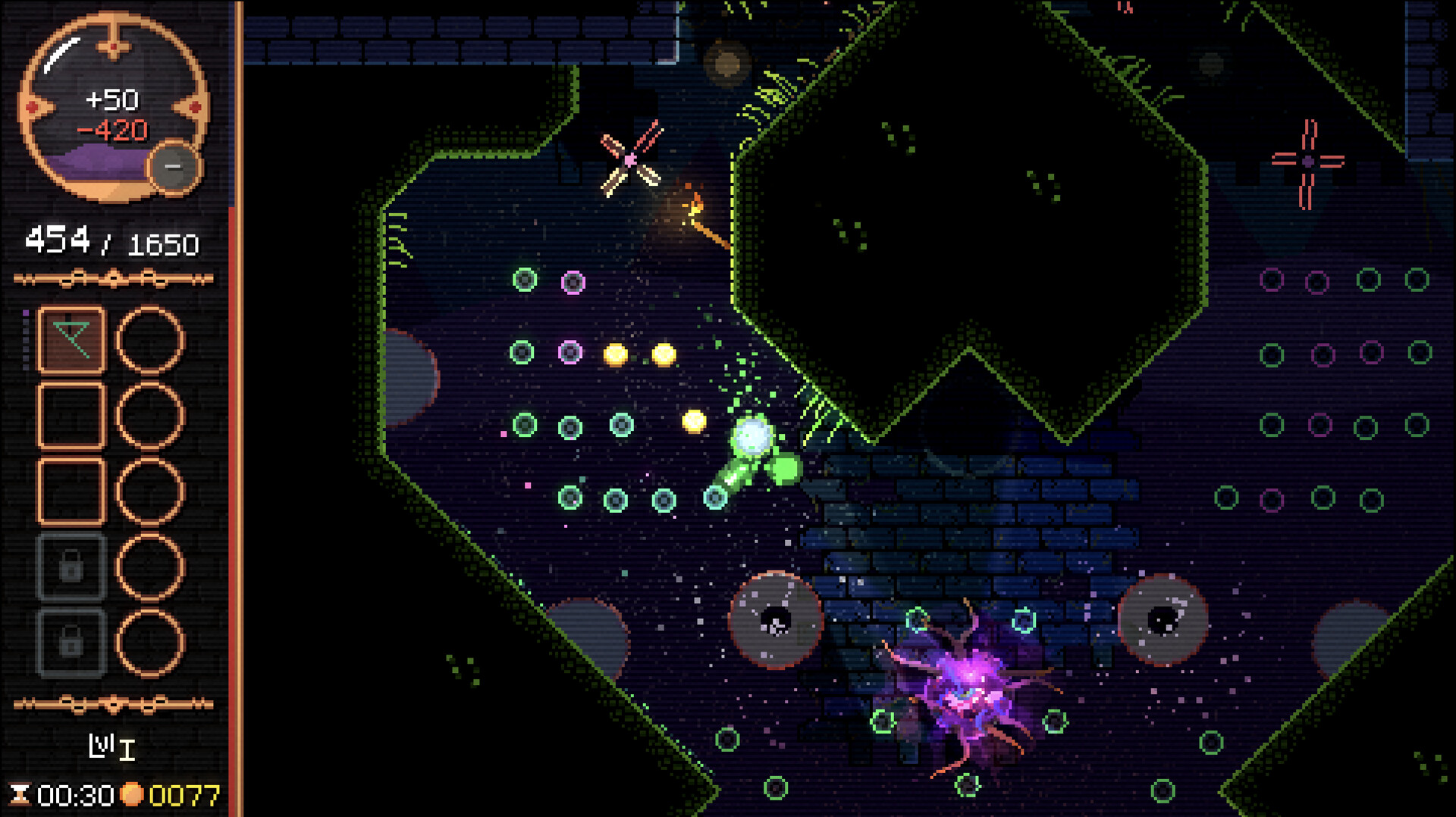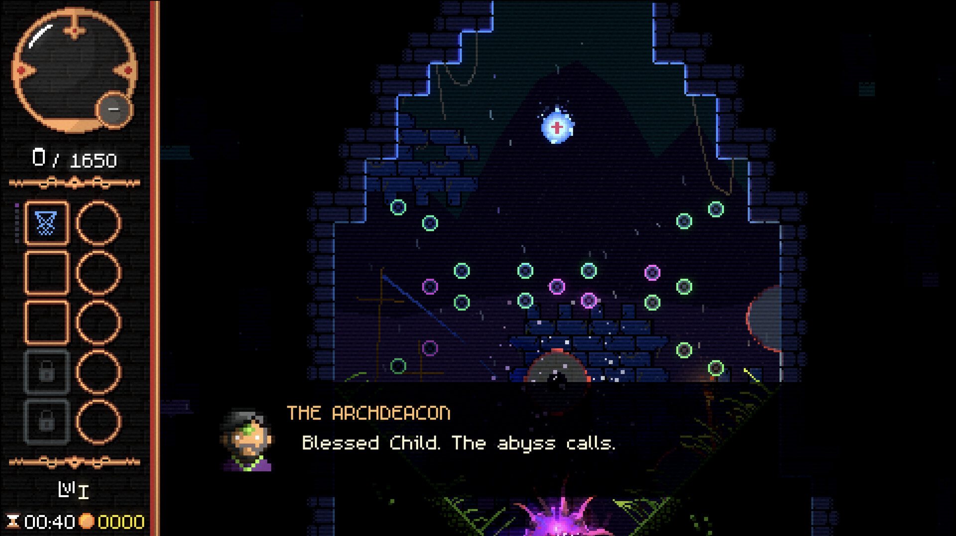 Every descent is ritual. Launch your disc, break the crystals, collect their essence. Gather enough to sate the Abyss and earn another descent. Fall short, and the Abyss devours you.