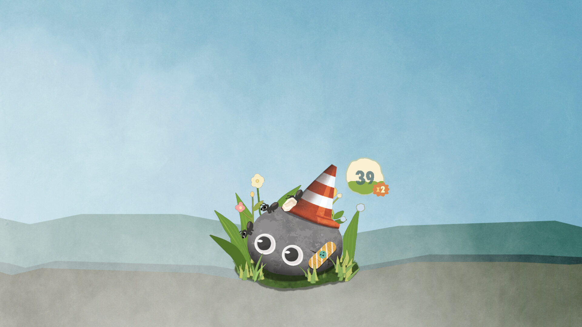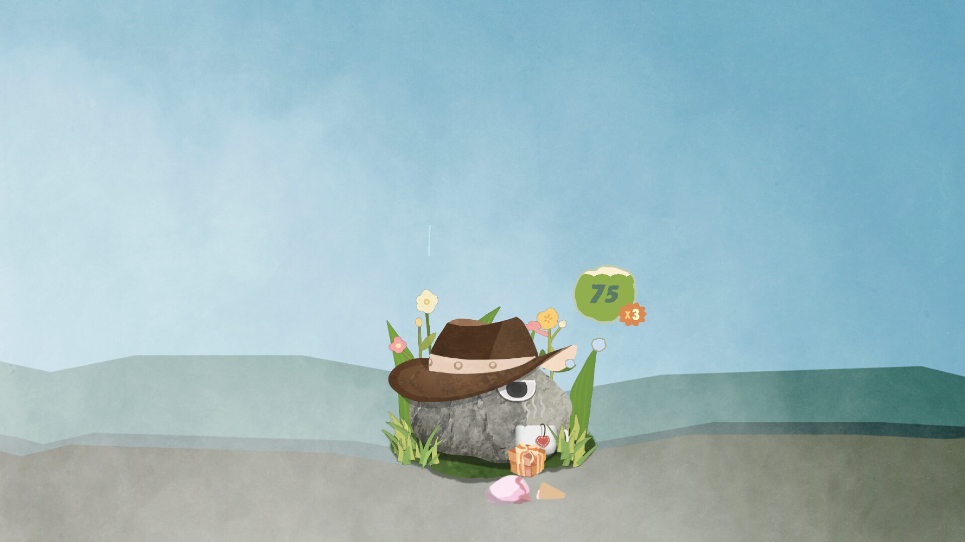 As time passes, your rock will slowly sprout moss and tiny patches of grass. Give it a quick grooming to keep it sharp and thinking fast. Beyond the greenery, unexpected encounters await the moment you look up from your work.