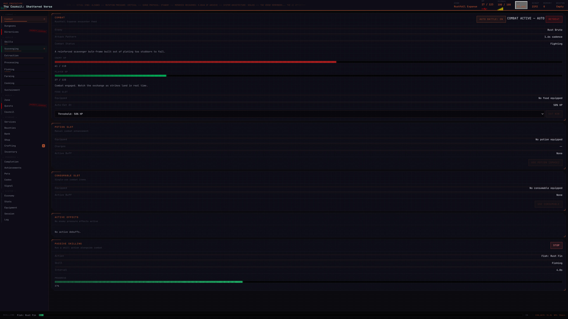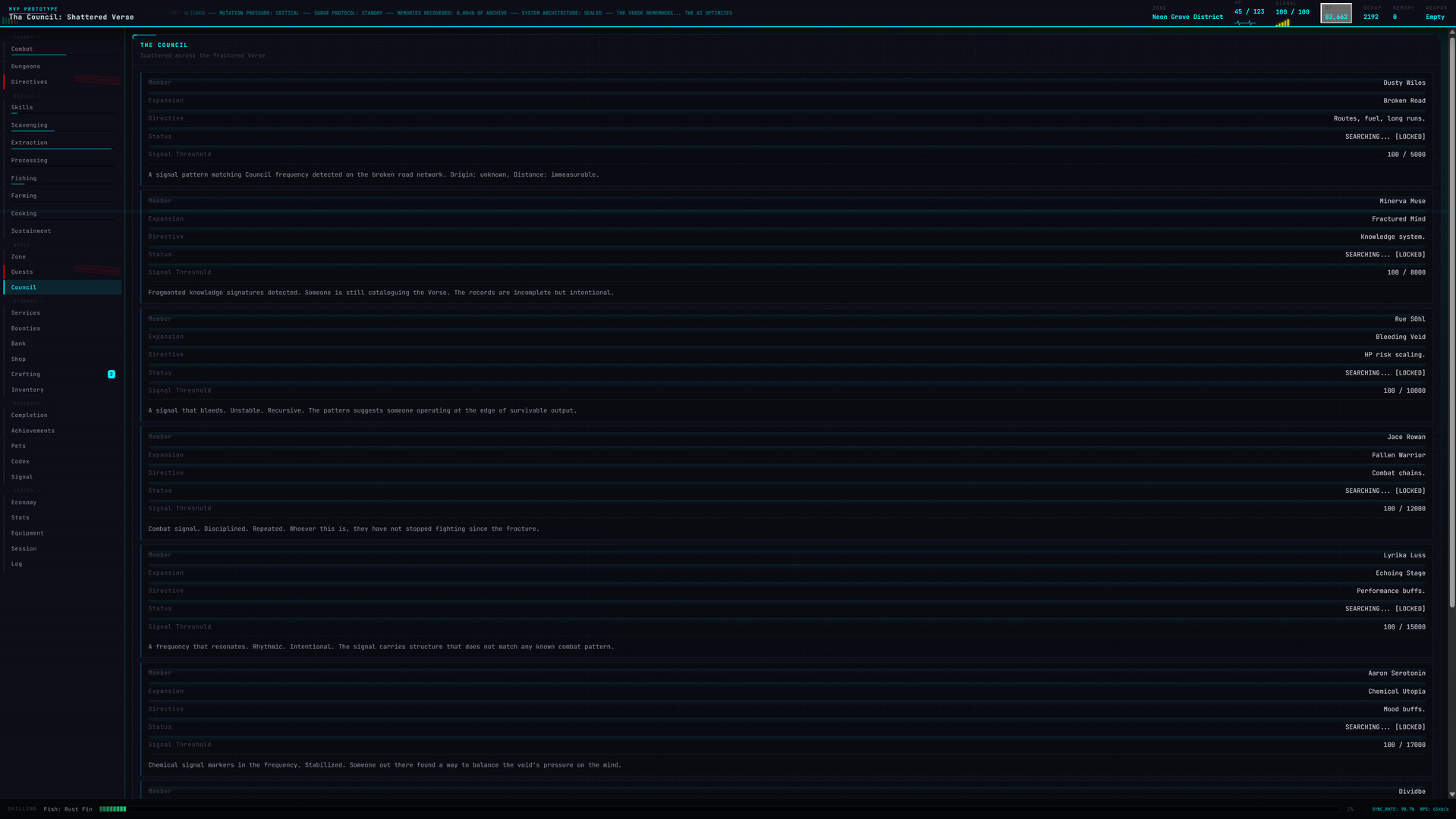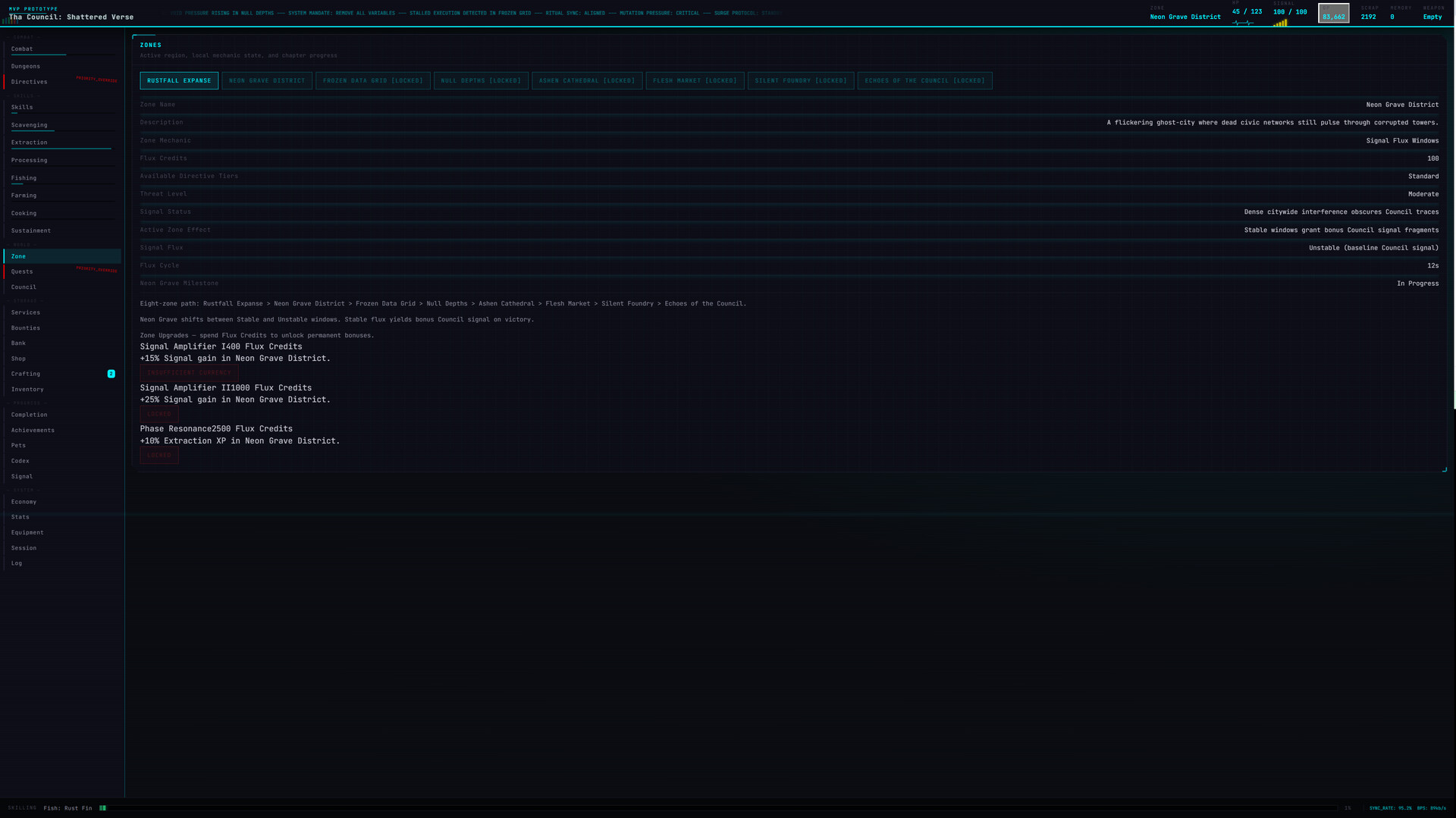 THE LOOP This is a dark sci-fi idle RPG where the story lives inside the grind. Every enemy killed and every signal fragment collected advances a narrative beat in your completion log. The AI is still running—it is indifferent to your presence. Your goal is not to destroy it, but to prove that the Council is once again computationally possible.
