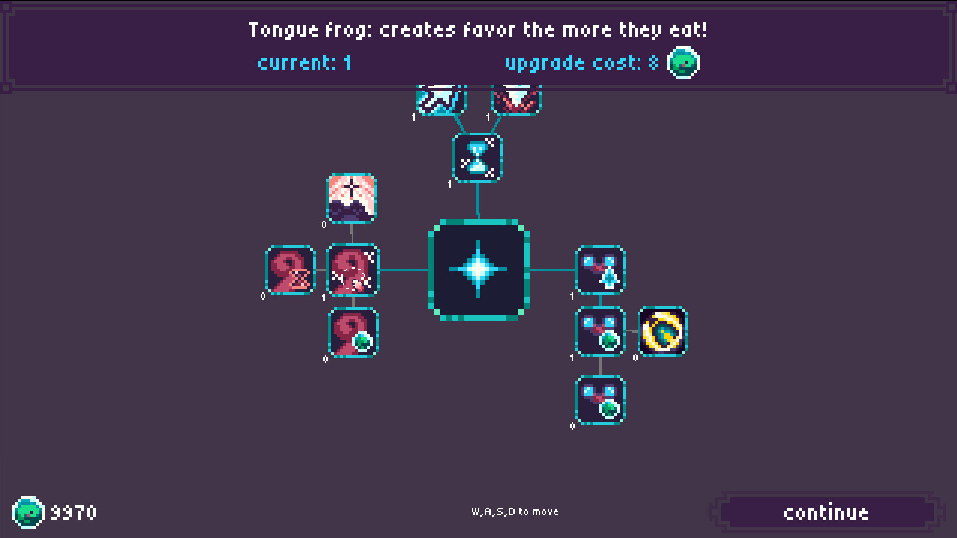 Prestige and reset your run progress in order to unlock more powers, more frogs and more insects!