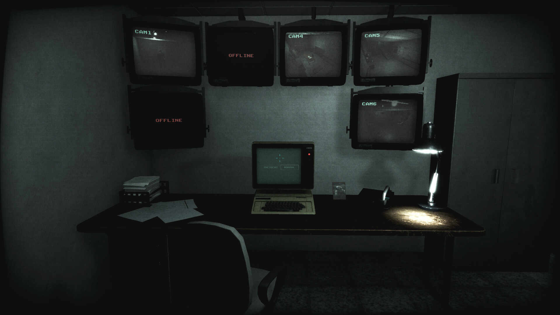 A desk. A terminal. Cameras pointed at a corridor that feels... familiar.