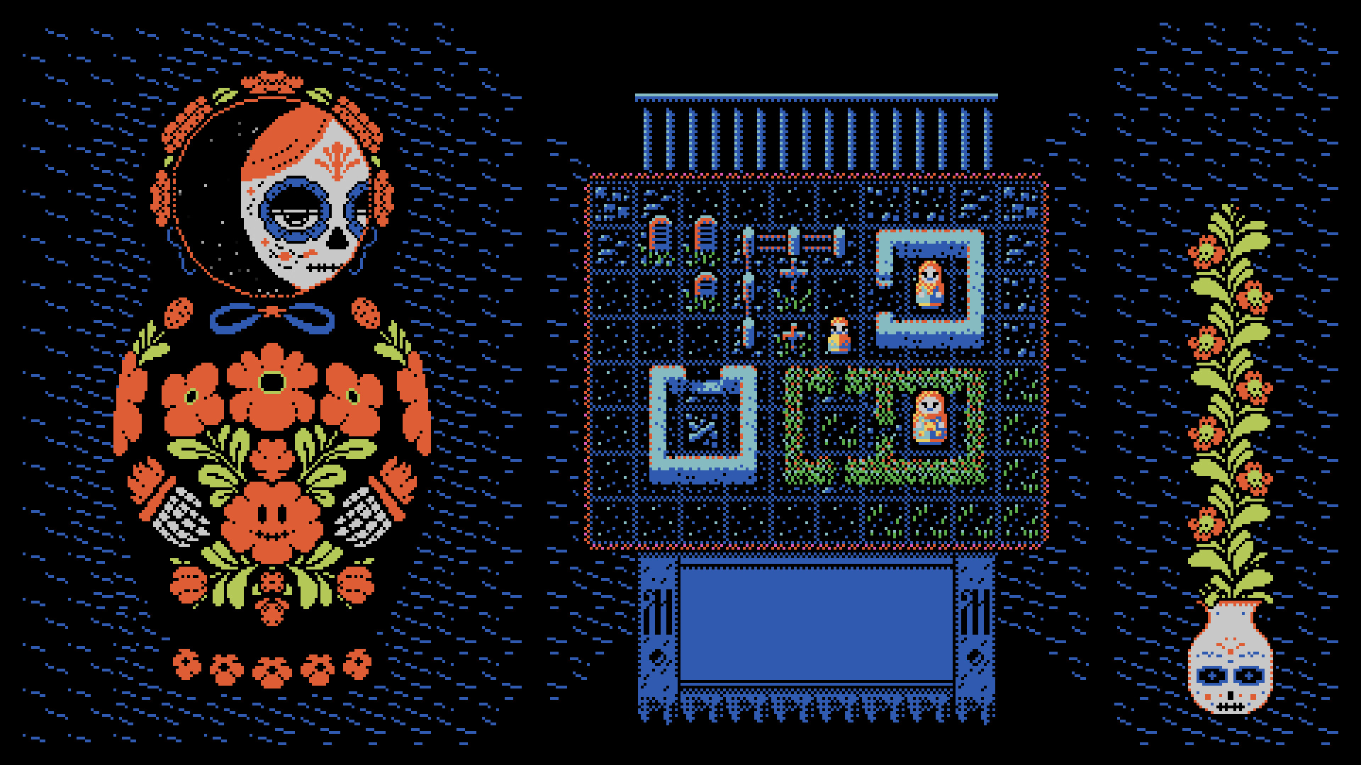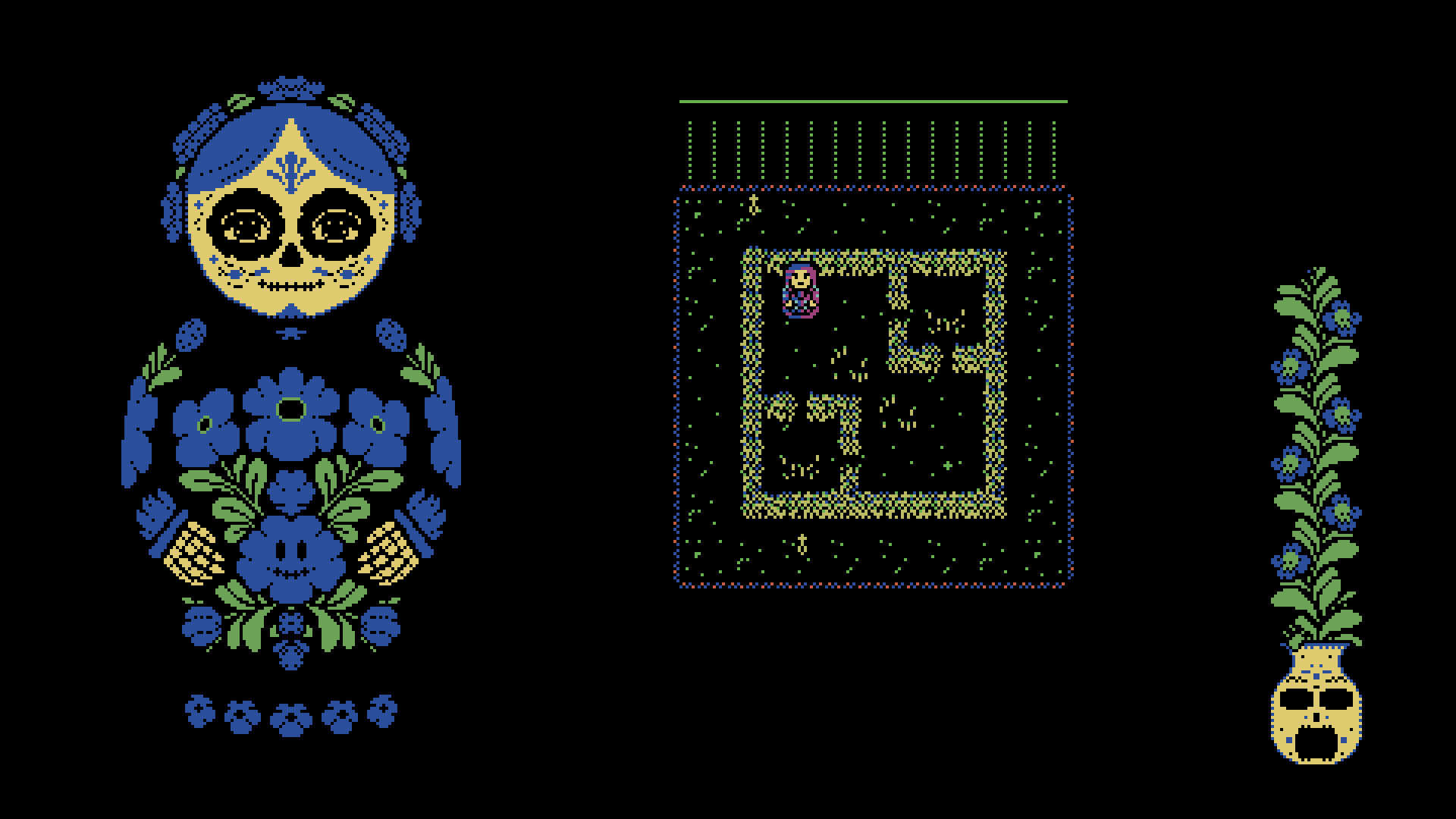 당신 앞에는 "자매 인형들" — 반쪽 및 온전한 마트료시카 인형들 — 이 흩어져 있는 게임 보드가 있습니다. 그것들을 결합하여 의식의 모닥불을 지펴주세요. 결합에 성공할 때마다 부활의 순간이 가까워지지만, 장애물과 어둠의 세력이 꾸미는 음모가 당신의 의식을 방해할 것입니다.
