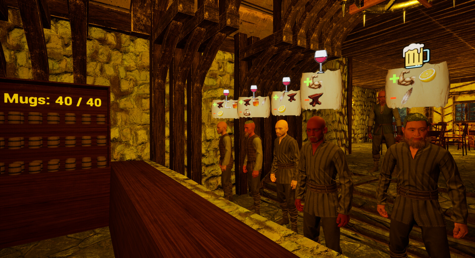 • 몰입감 넘치는 1인칭 게임 플레이와 중세 주점 분위기