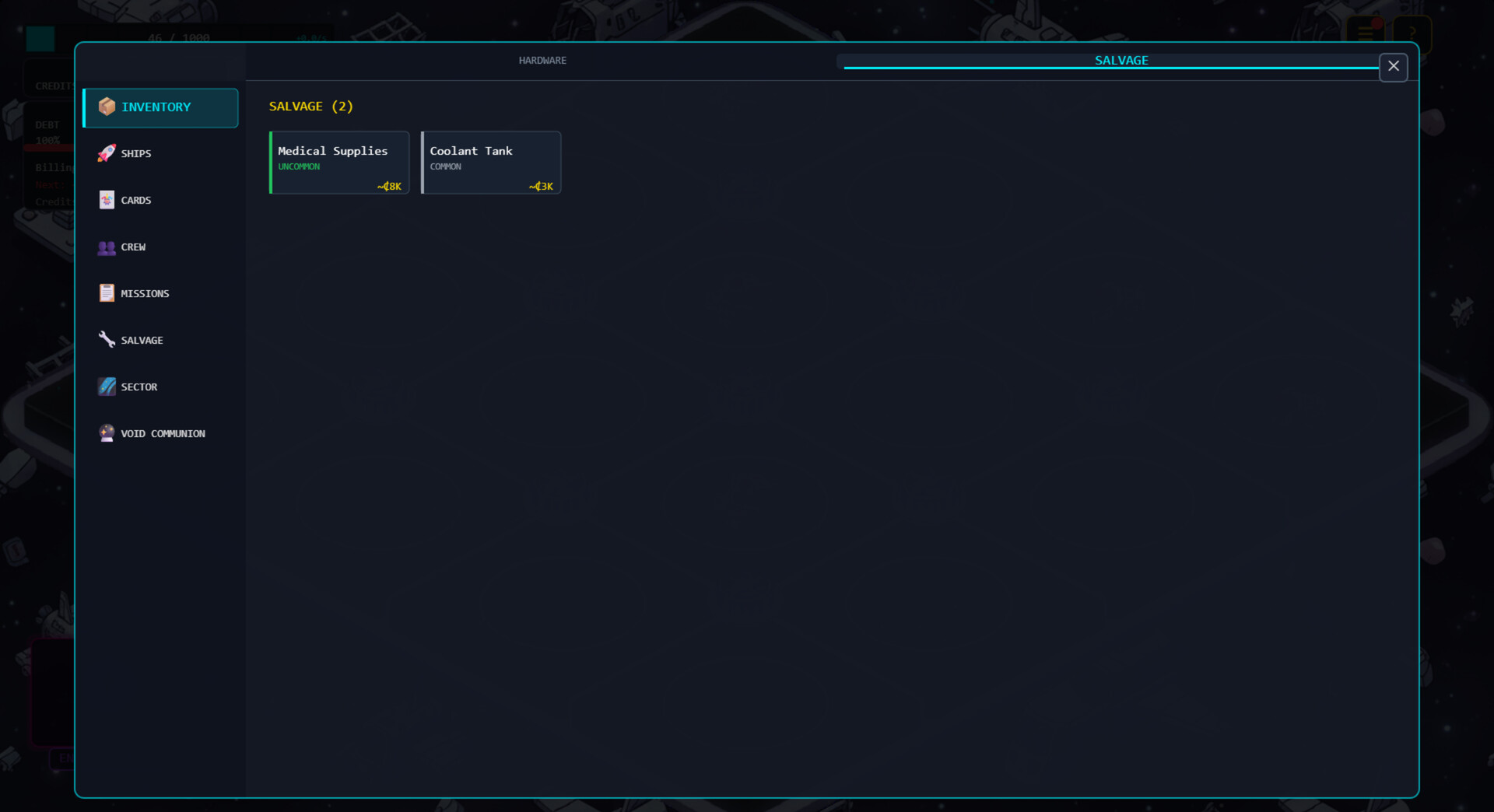 Visit the Salvage Yard between runs. Unload Medical Supplies, Coolant Tanks, scrap metal. Recycle power cells for energy. Credits pay debt. Debt pays the Company. The question isn't "get stronger"—it's "can you build enough to escape without becoming the next layer of management?"
