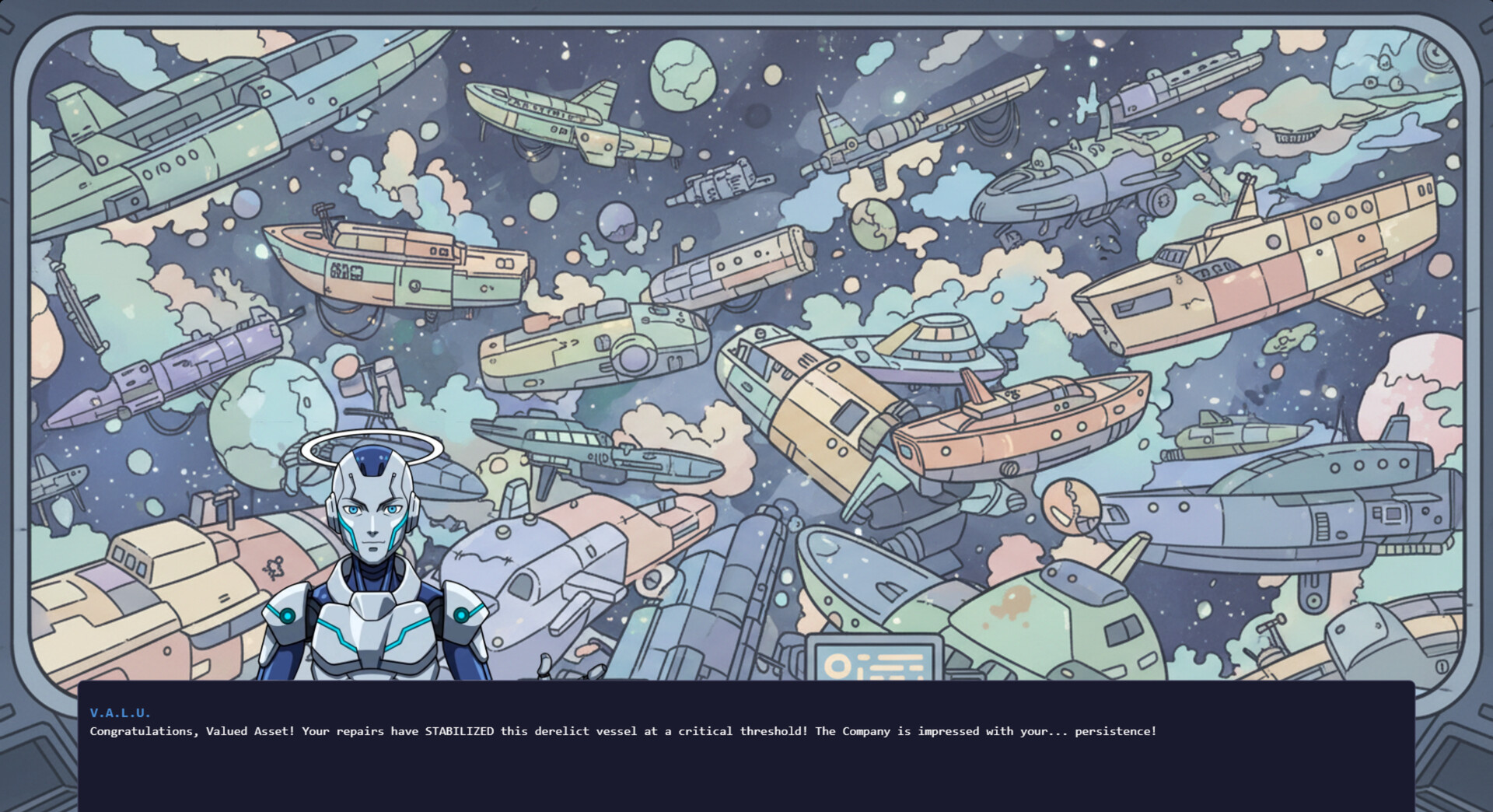 V.A.L.U.—your friendly corporate liaison—will congratulate you on your "persistence." The sector is full of abandoned ships, ghost fleets, and euphemisms. Cards have names like Compliance Scan, Break Room Raid, and BOHICA Protocol. The tone is darkly funny. The stakes are real.