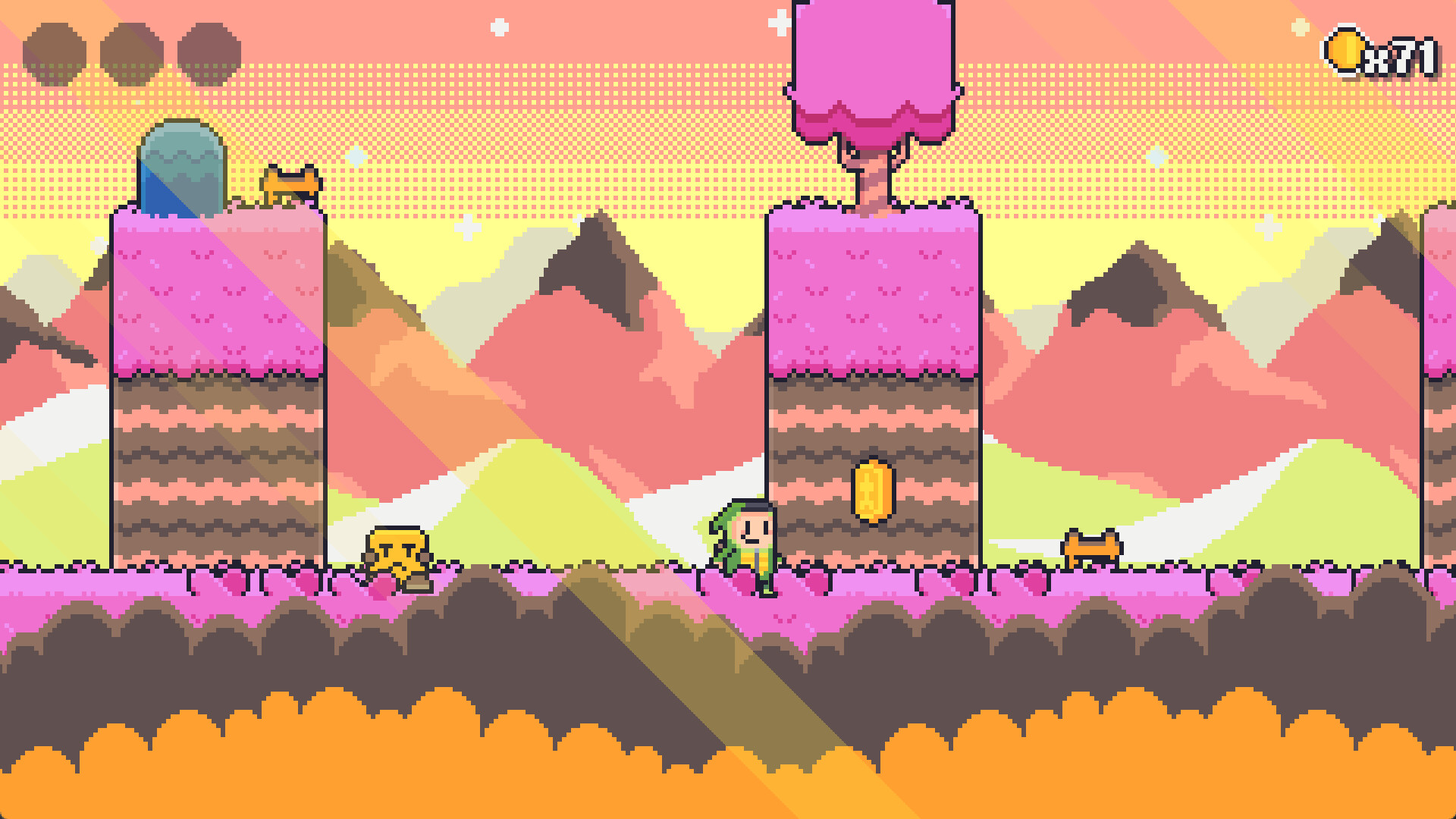 In this retro 2D platformer, you'll journey through uncharted lands and face numerous obstacles across 50 levels spread across 5 different worlds. Along the way, you'll find power-ups in the form of animal costumes, granting you different powers to overcome the challenges and dangers that await you. Keep your eyes peeled, as there are secrets and many items scattered throughout these lands!
