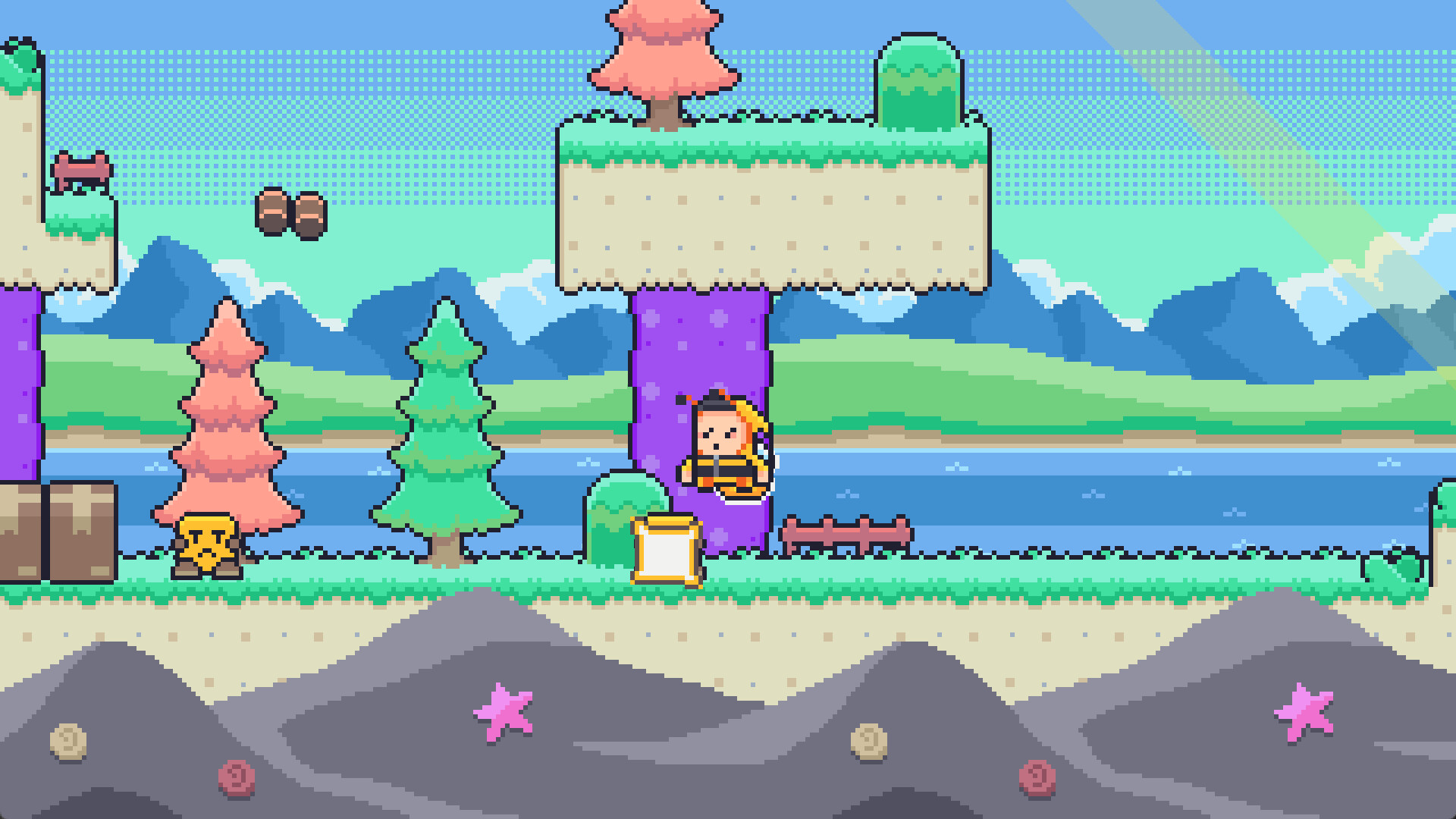 Colorful 8-bit style graphics;