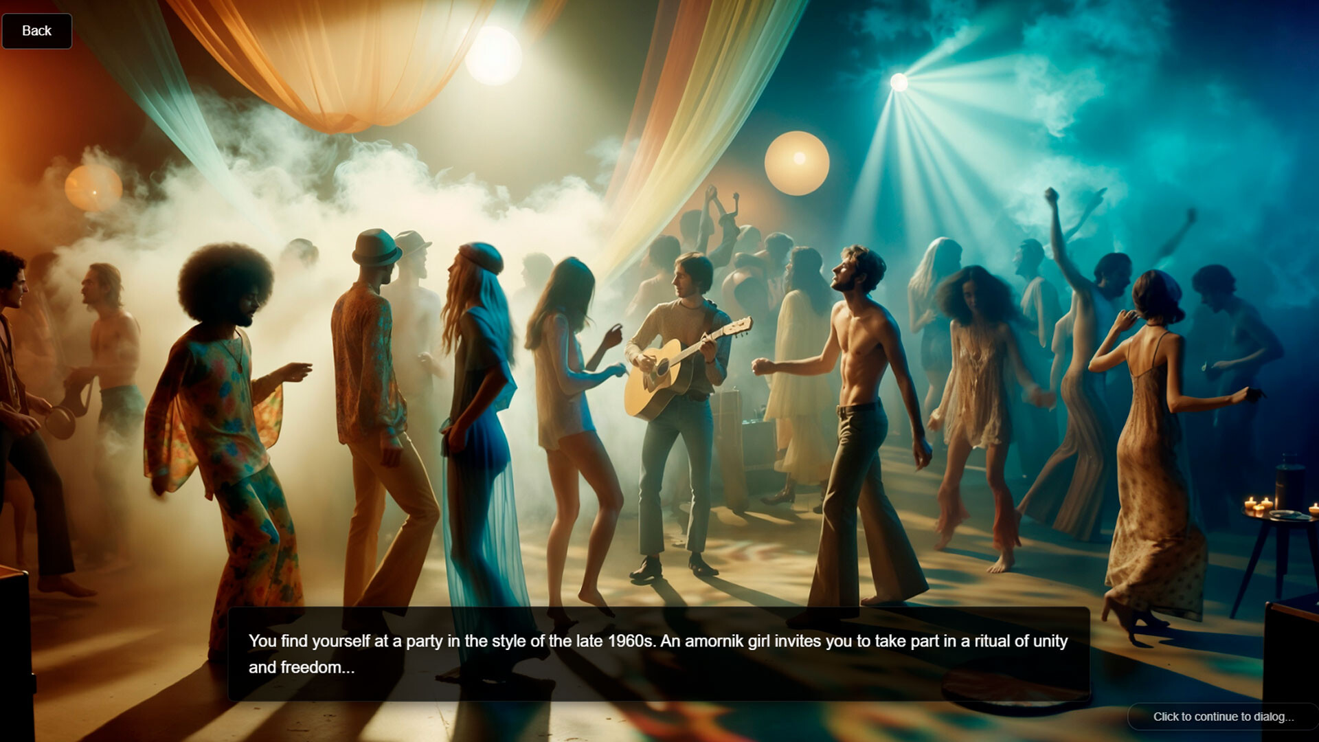 Your mission begins as reconnaissance: gain the trust of districts dwellers through meaningful conversation. Navigate branching dialogues where thoughtful responses unlock new locations and deeper discussions. From cabarets and art galleries to anti-war protests and TV studios, each encounter offers perspectives on consumerism, media influence, power, self-worth, and the eternal human search for meaning.