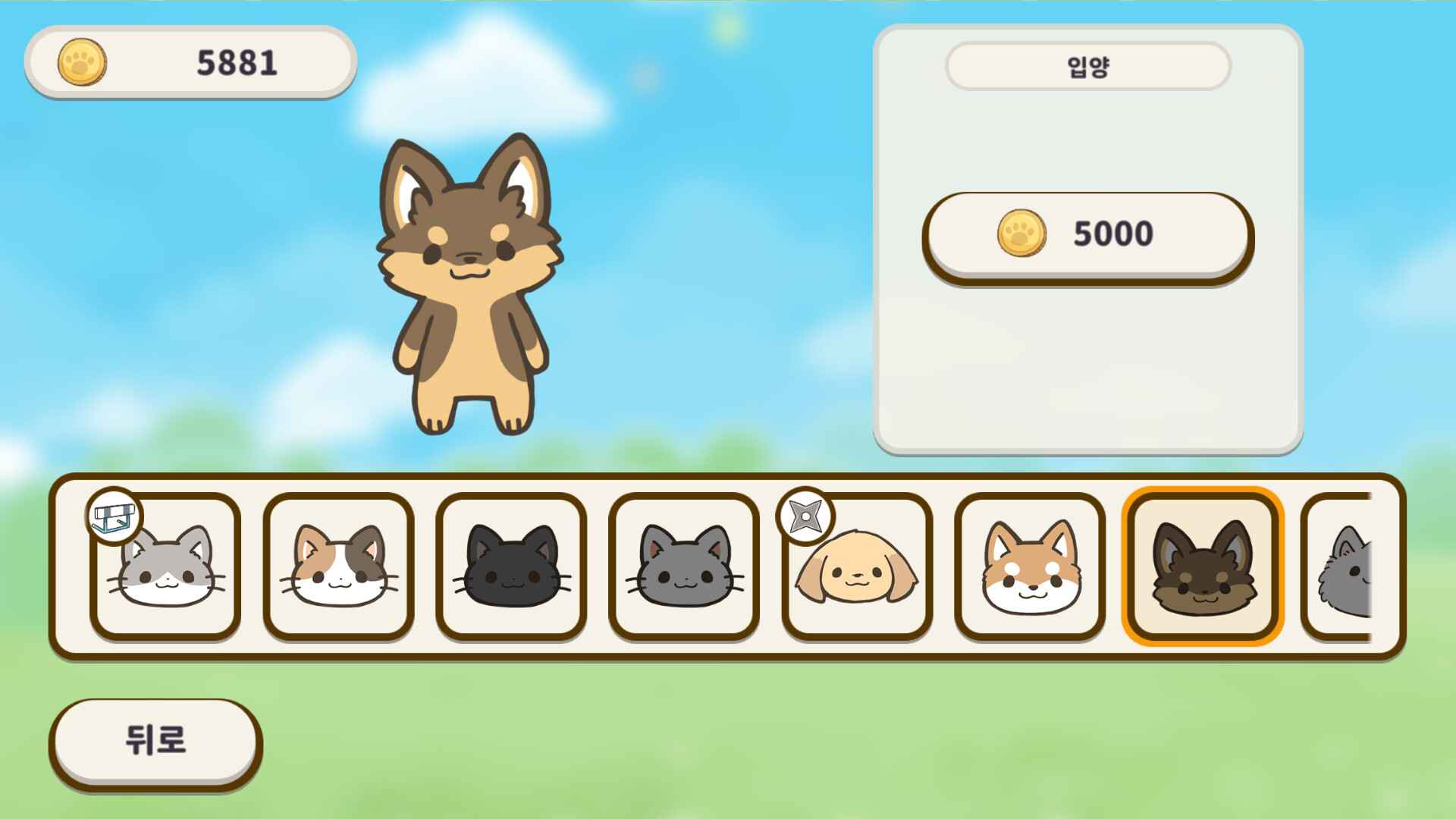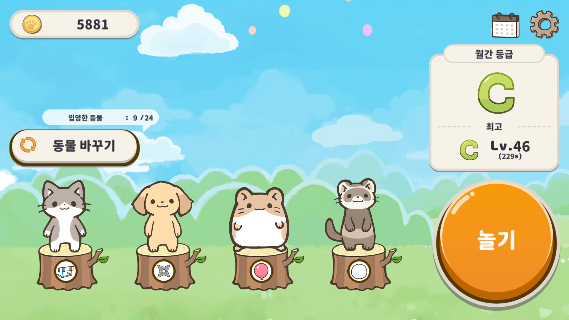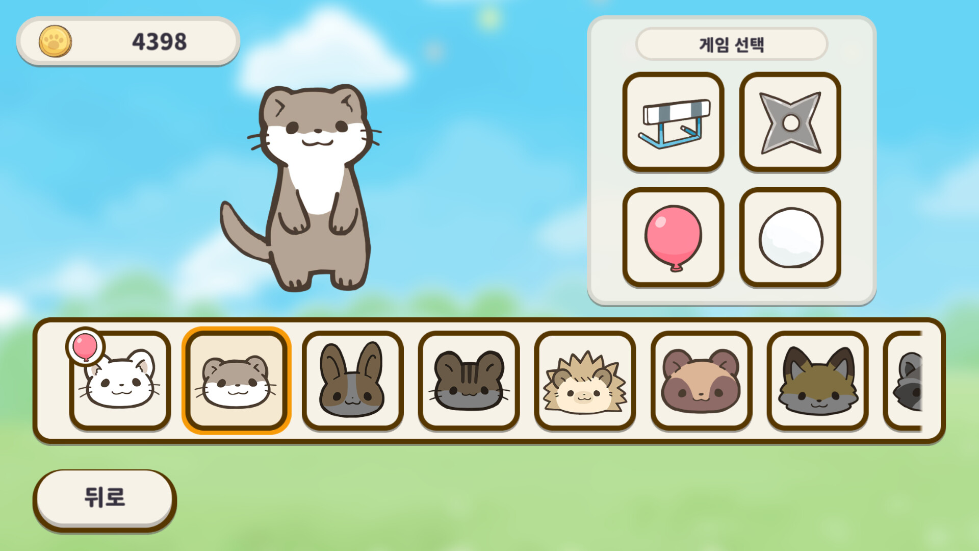 게임을 하고 코인을 모으면 새로운 동물을 입양할 수 있어요.