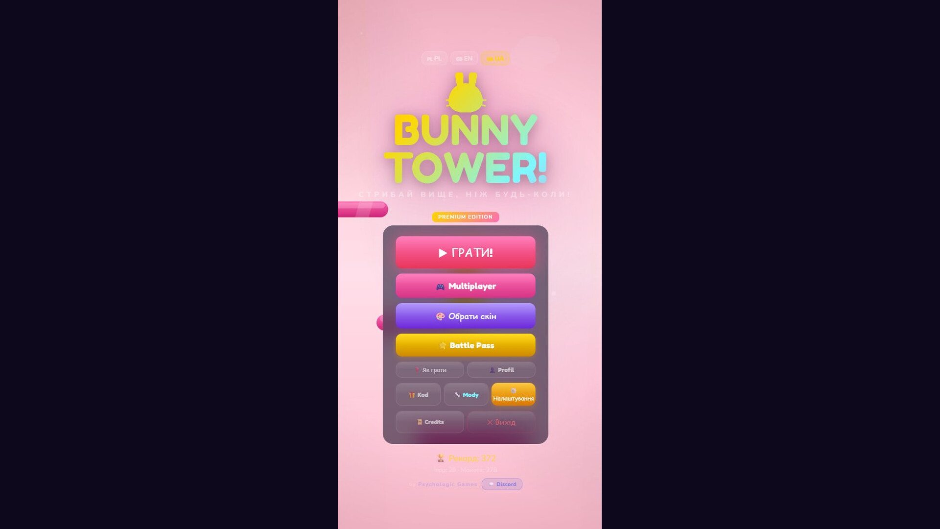 Bunny Tower is a fast-paced arcade platformer inspired by classics like Icy Tower. Play as an adorable bunny hopping up an endless tower of platforms — each one narrower, faster, and trickier than the last.