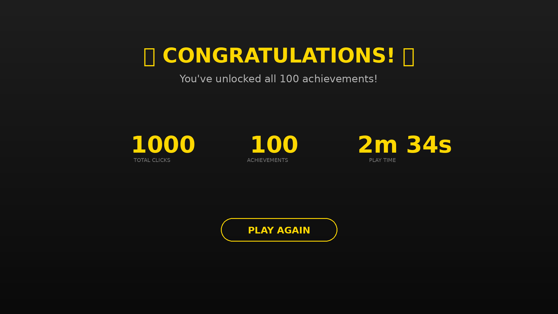 100 unlockable achievements — One achievement every 10 clicks, from "First Steps" to "EXTREME MASTER"
