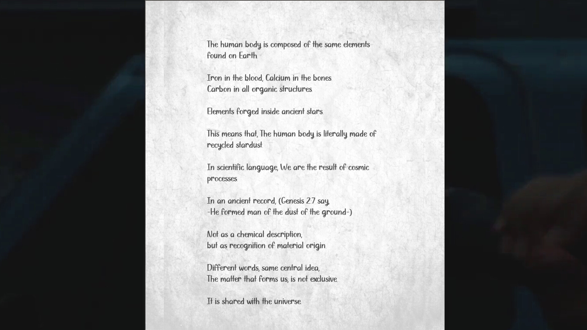The game unfolds progressively, it begins with accessible scientific concepts—grounding players in a neutral, rational perspective—before gradually introducing deeper philosophical and biblical interpretations. Rather than opposing forces, science and faith are presented as complementary lenses, offering different ways to understand the same reality.