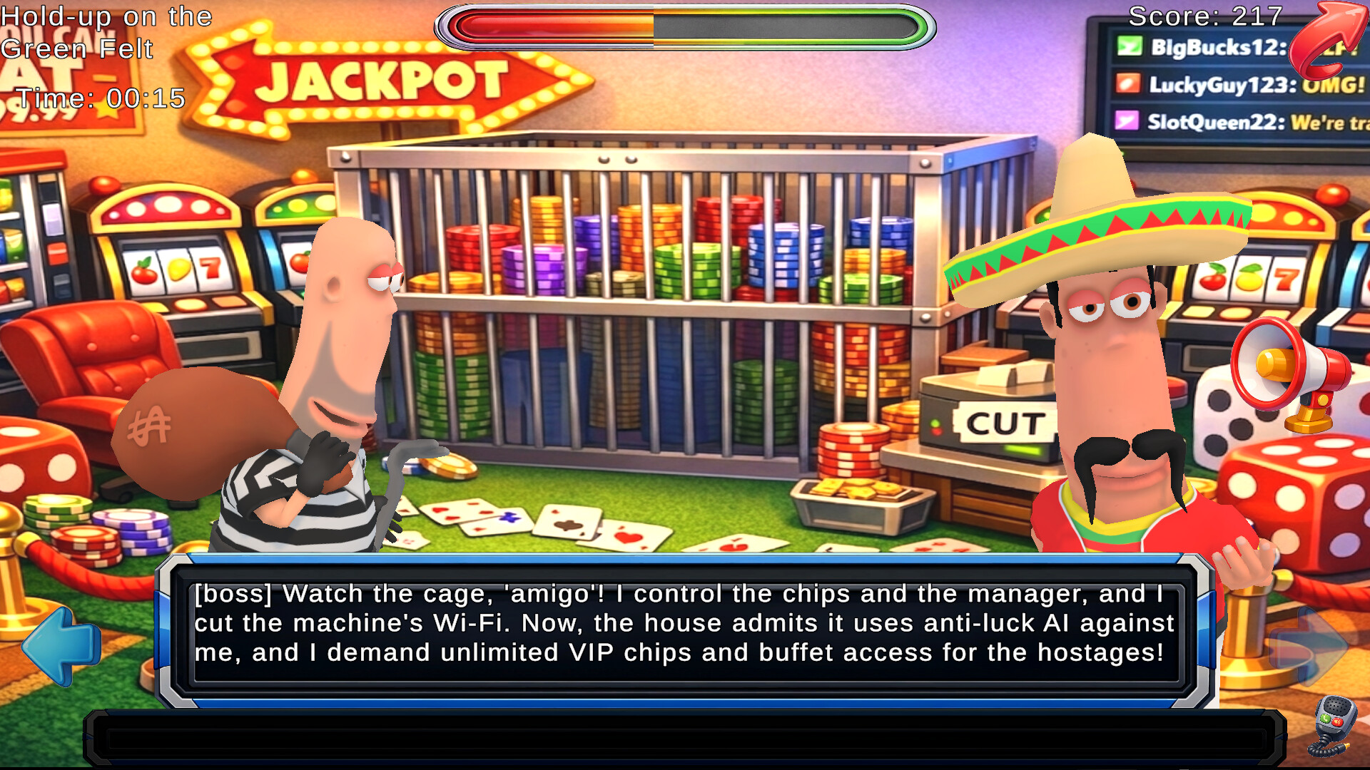 코미디 & 풍자: 인질범을 상대로 당신의 인내심을 테스트하기 위해 고안된 어둡고 유머러스한 시나리오.