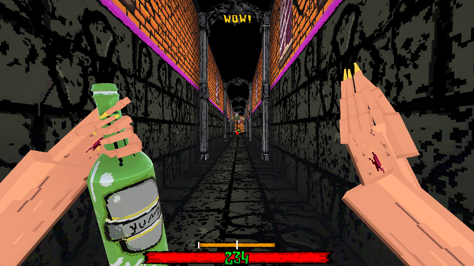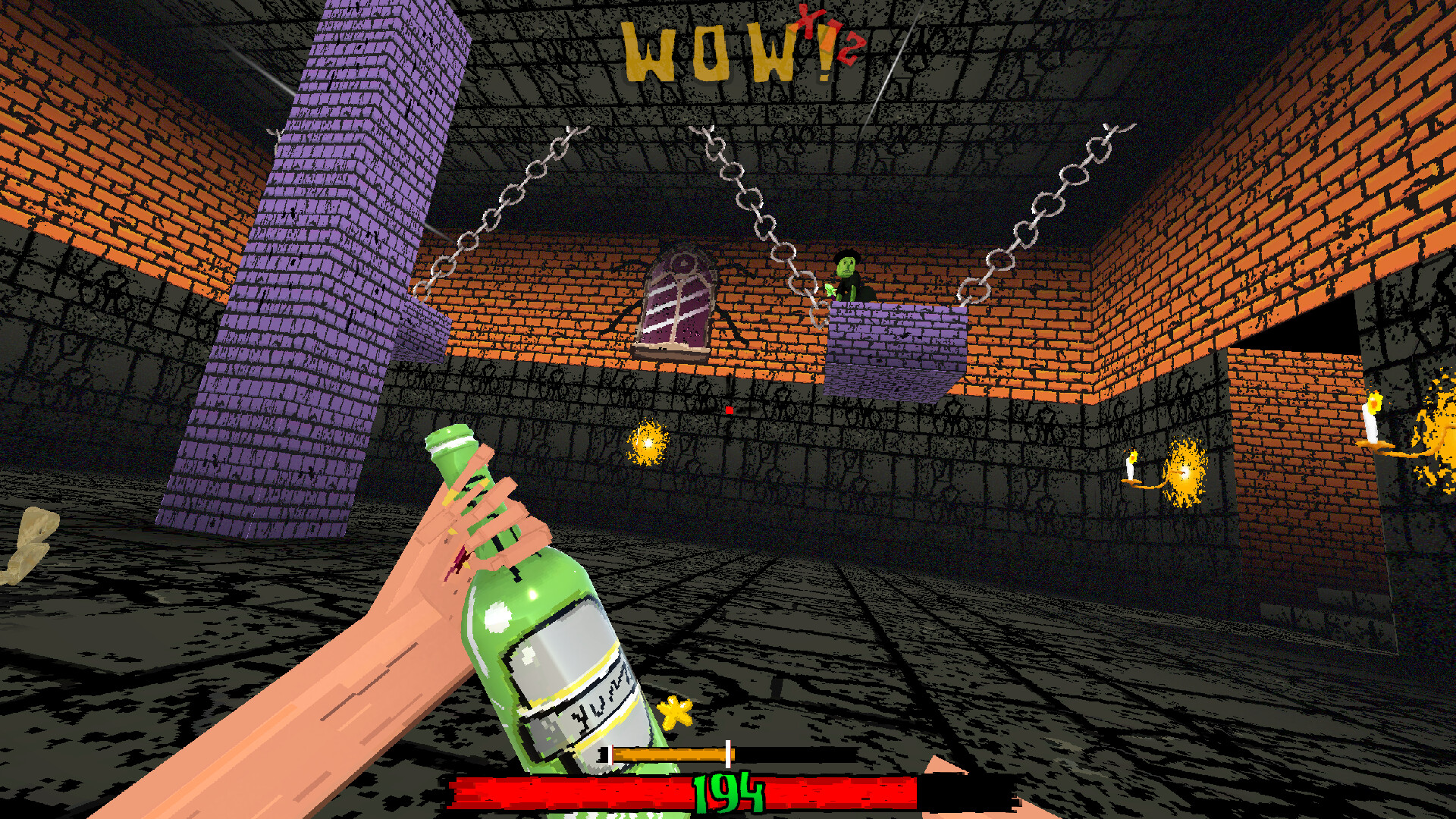 CHUG TO SURVIVE: Your health is constantly draining. You must drink perfectly on sync to gain back your health. Miss the rhythm, and you BONK your head. You die once, you restart from level 1!
