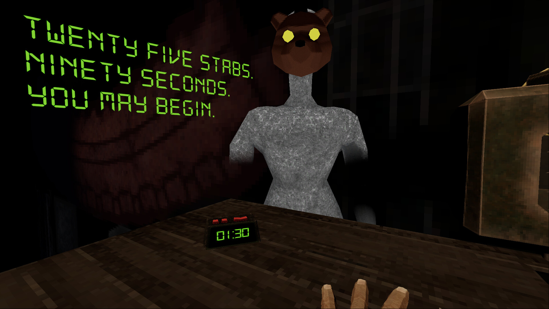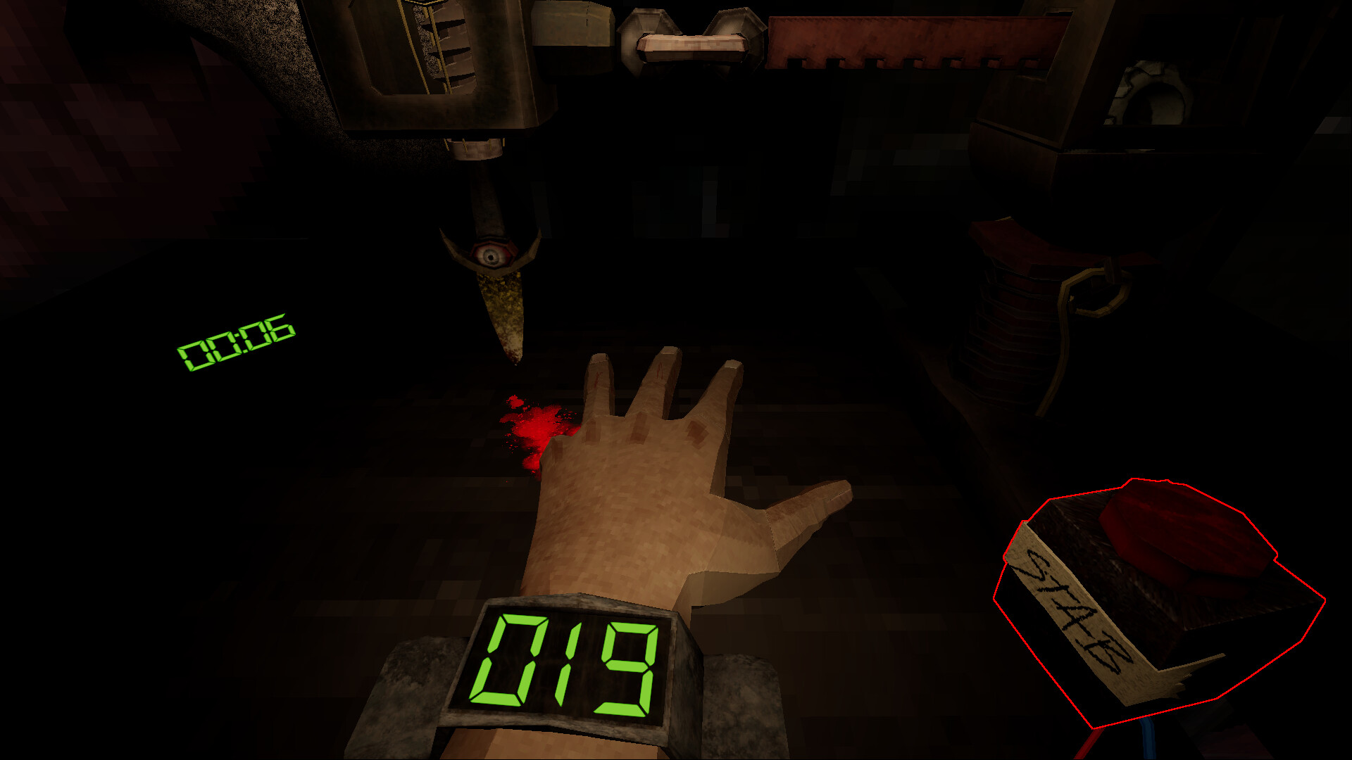 You'll lose fingers. You'll black out from pain. You'll bleed and bleed and bleed until there's nothing left in you. Every stab carries a risk. Every stab brings you closer to salvation. You must beat the clock against all odds.