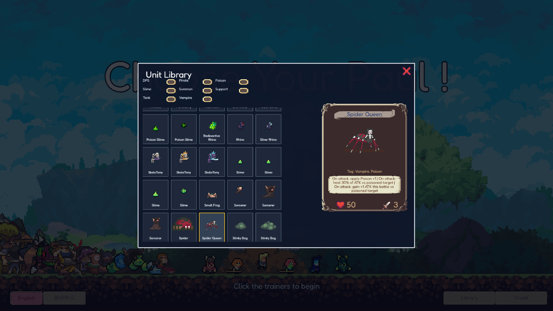 고유한 패시브, 전용 유닛 풀, 판도를 바꾸는 메커니즘을 가진 트레이너를 선택하세요. 첫 선택이 당신의 길을 정하고 이후의 모든 판단을 바꿉니다.