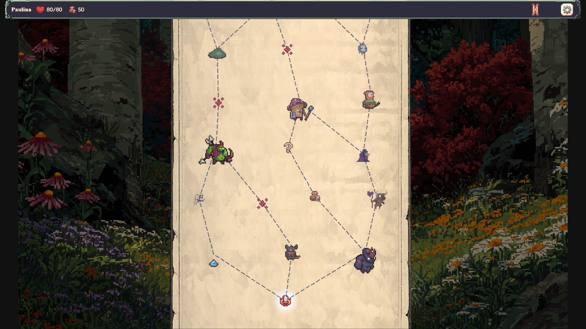 일반 전투, 엘리트 조우, 업그레이드, 상점, 휴식지, 보스가 가득한 분기형 맵에서 경로를 선택하세요. 모든 노드는 힘, 욕심, 회복, 위험 사이의 전략적 선택입니다.