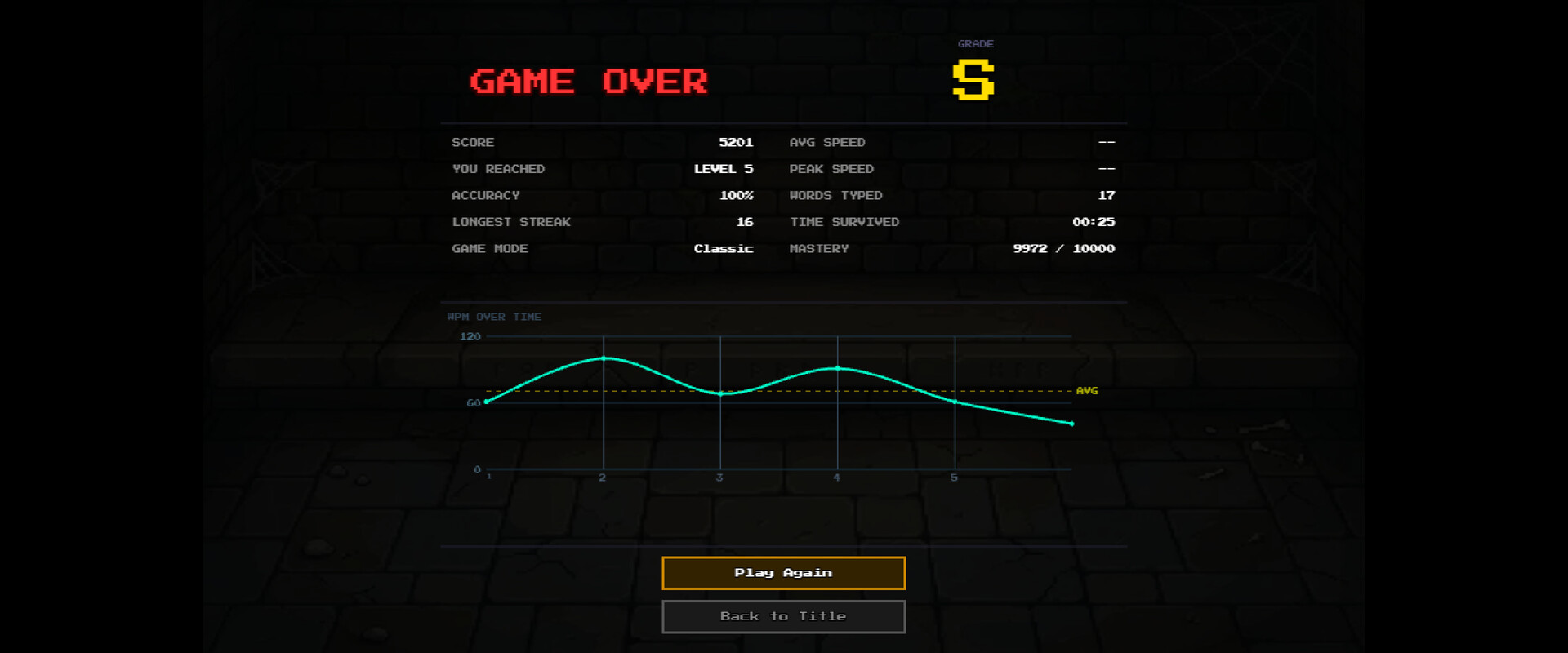 - Track Your Progress — Detailed stats, WPM tracking, accuracy grades, high scores, and achievements.
