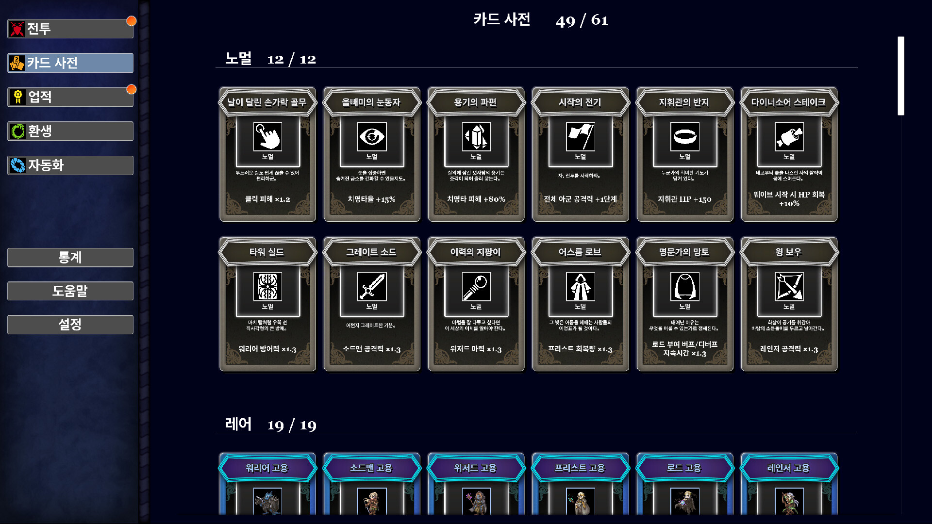 - 로그라이트 카드 선택으로 완성하는 빌드