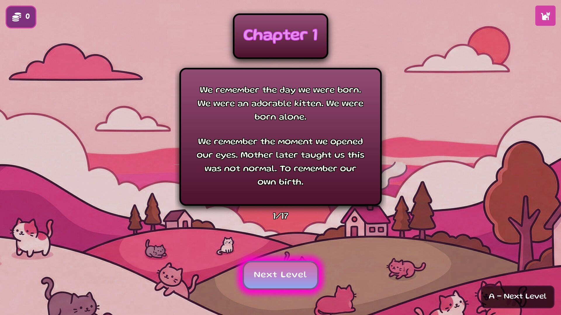 Kitty Krush 는 군체 의식을 가진 고양이 문명이 인류를 예속시키는 포근한 고양이 이야기입니다. 단순화된 덱 빌더에 담겨 매 판마다 챕터를 해금합니다. 실화를 바탕으로 했습니다.