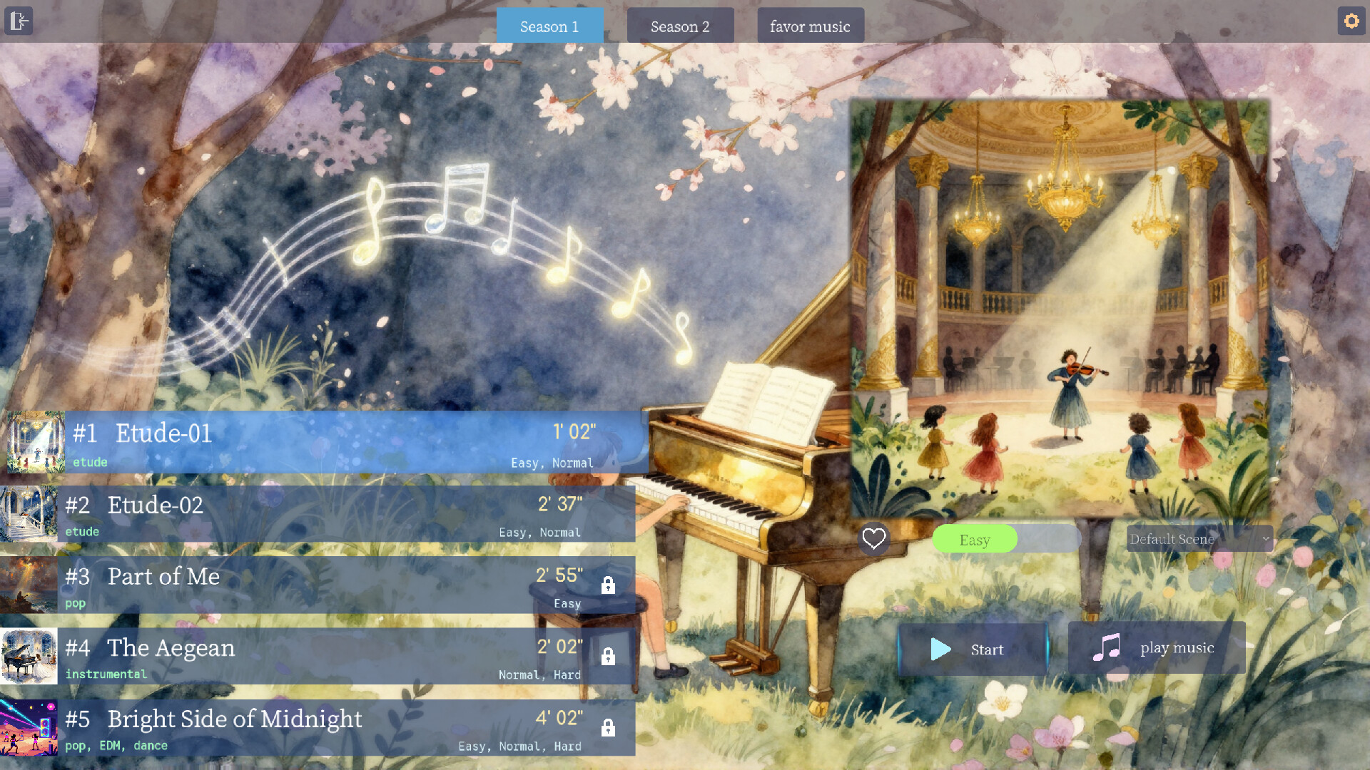 PopVibe는 팝 멜로디의 즐거움에 집중한 직관적인 리듬 게임입니다. 복잡한 메커니즘이나 압박감을 주는 갑작스러운 난이도 상승 없이, 그저 음악의 리듬에 맞춰 키를 누르는 것만으로 즐길 수 있습니다.