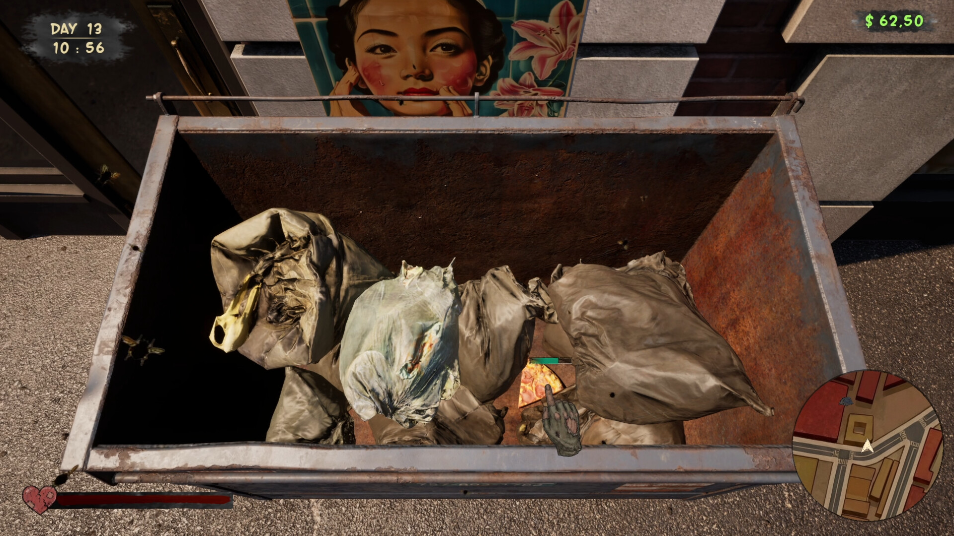 You can try to make money by begging, dumpster diving, collecting scrap, or using the guitar skills left over from your past life. It is entirely up to you to finish this game with your honor intact.