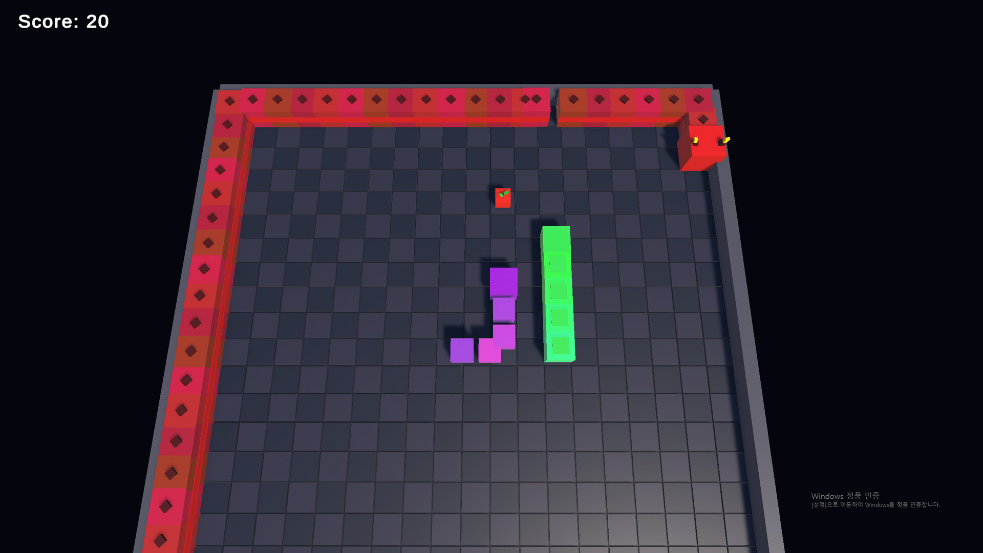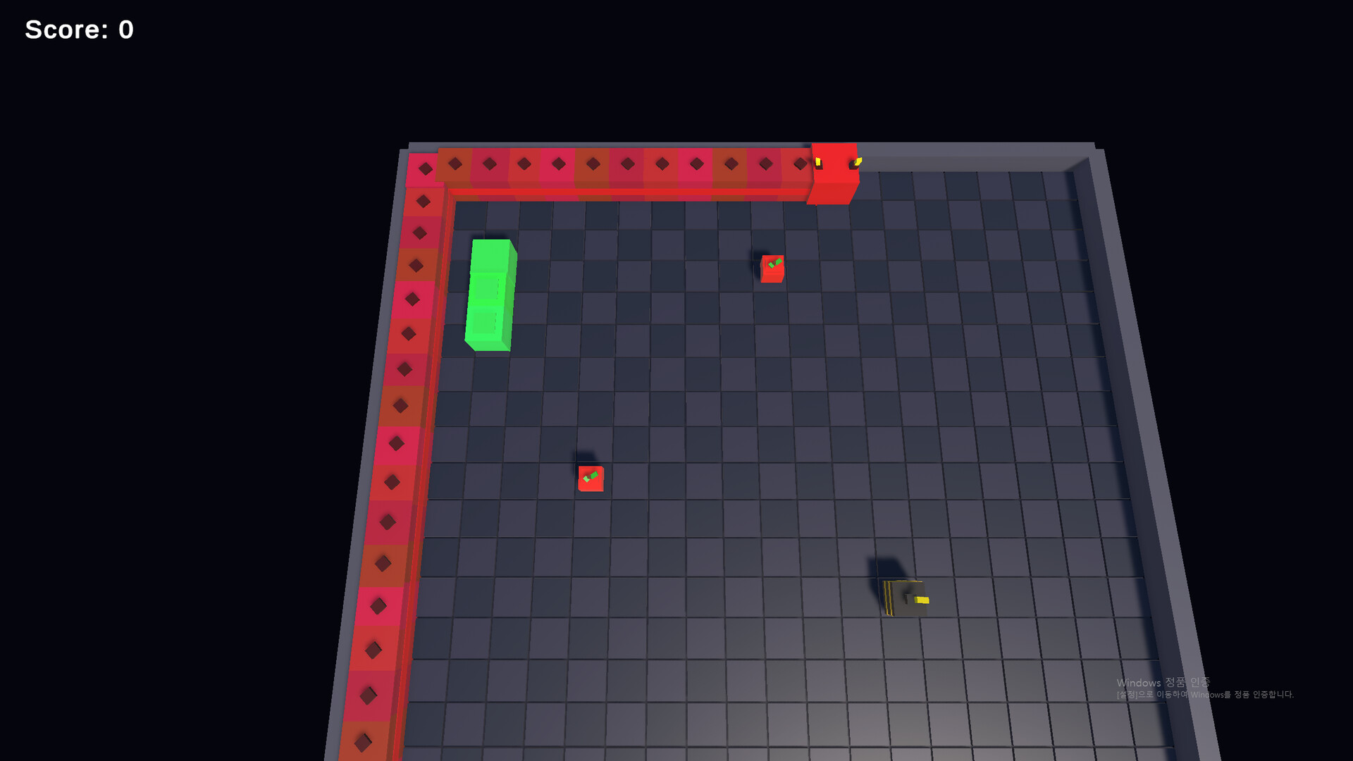 wasd로 움직이세요! 당신의 초록색 뱀은 앞으로 자동으로 움직입니다. 당신은 단지 방향을 조작하시면 됩니다.