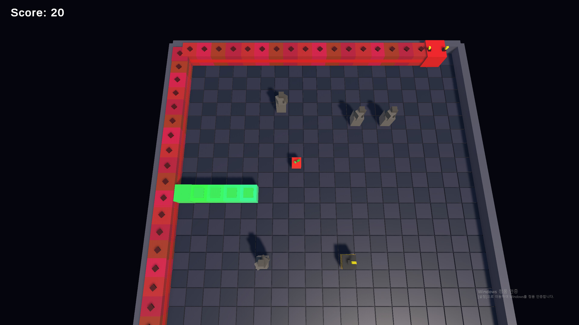 보스의 몸, 보스가 소환한 뱀의 몸, 보스가 소환한 돌 기둥에 닿으면 몸통이 잘리거나 사망합니다.