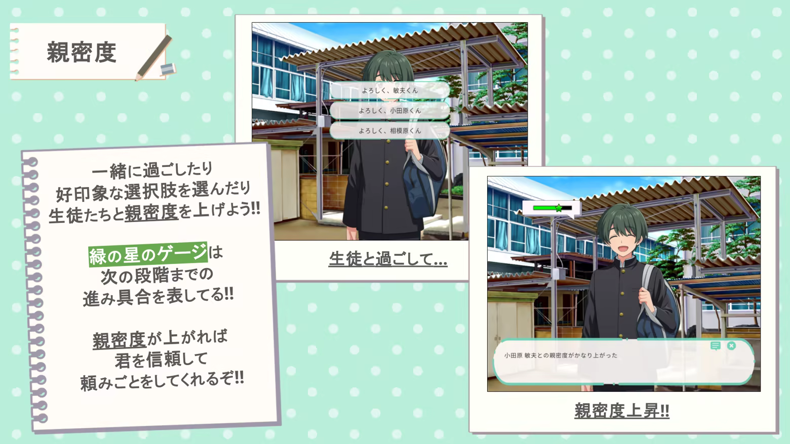 さまざまな人と出会い、関係を築きながら、恋人を作らなければならない。