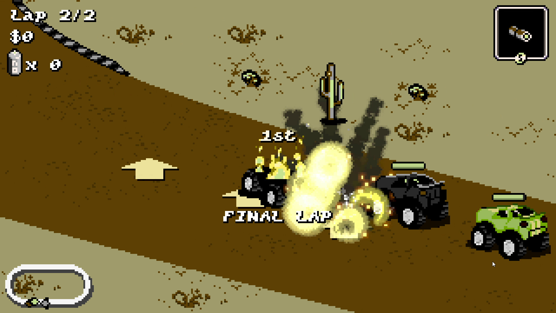 Earn money by destroying rivals and smashing track objects, unlock new weapons, and upgrade your car to take on increasingly intense circuits.