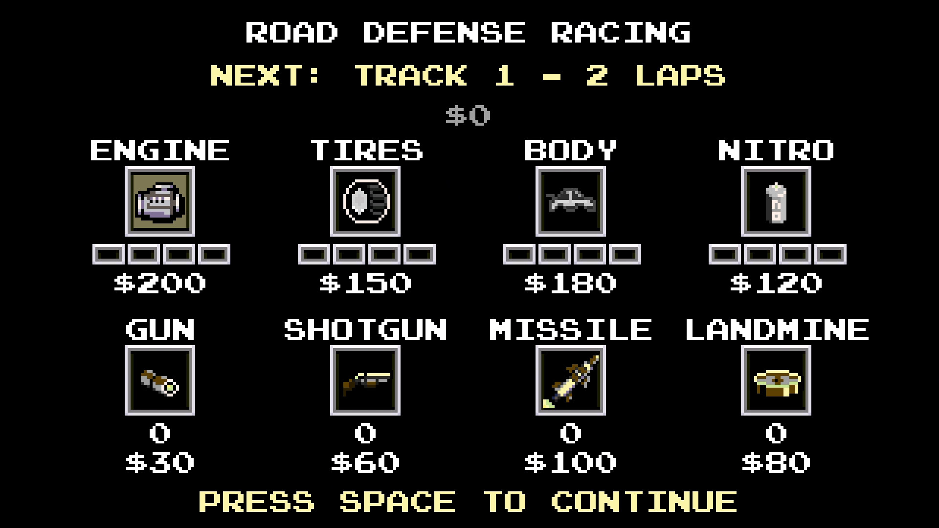 Improve your engine, tires, nitro, and armor to enhance speed and durability.